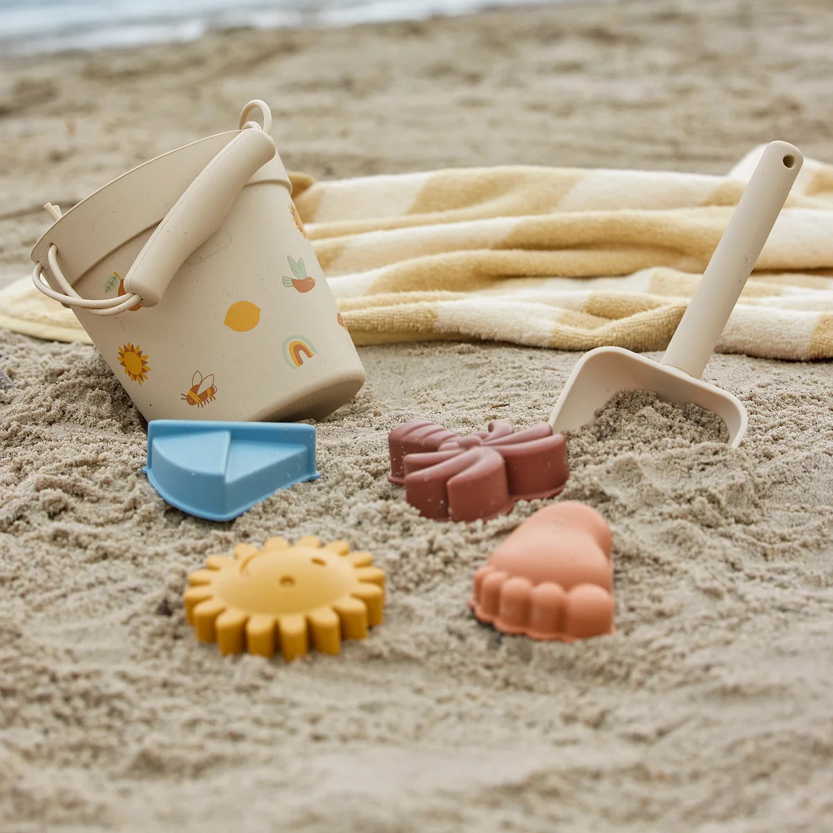 Bloomingville Het Agnes strand- en zandspeelgoed van Mini nodigt kinderen uit om urenlang plezierig en creatief in het zand te spelen. De set bevat een emmer, vormen van verschillende figuren en een schep, perfect voor kleine handjes.