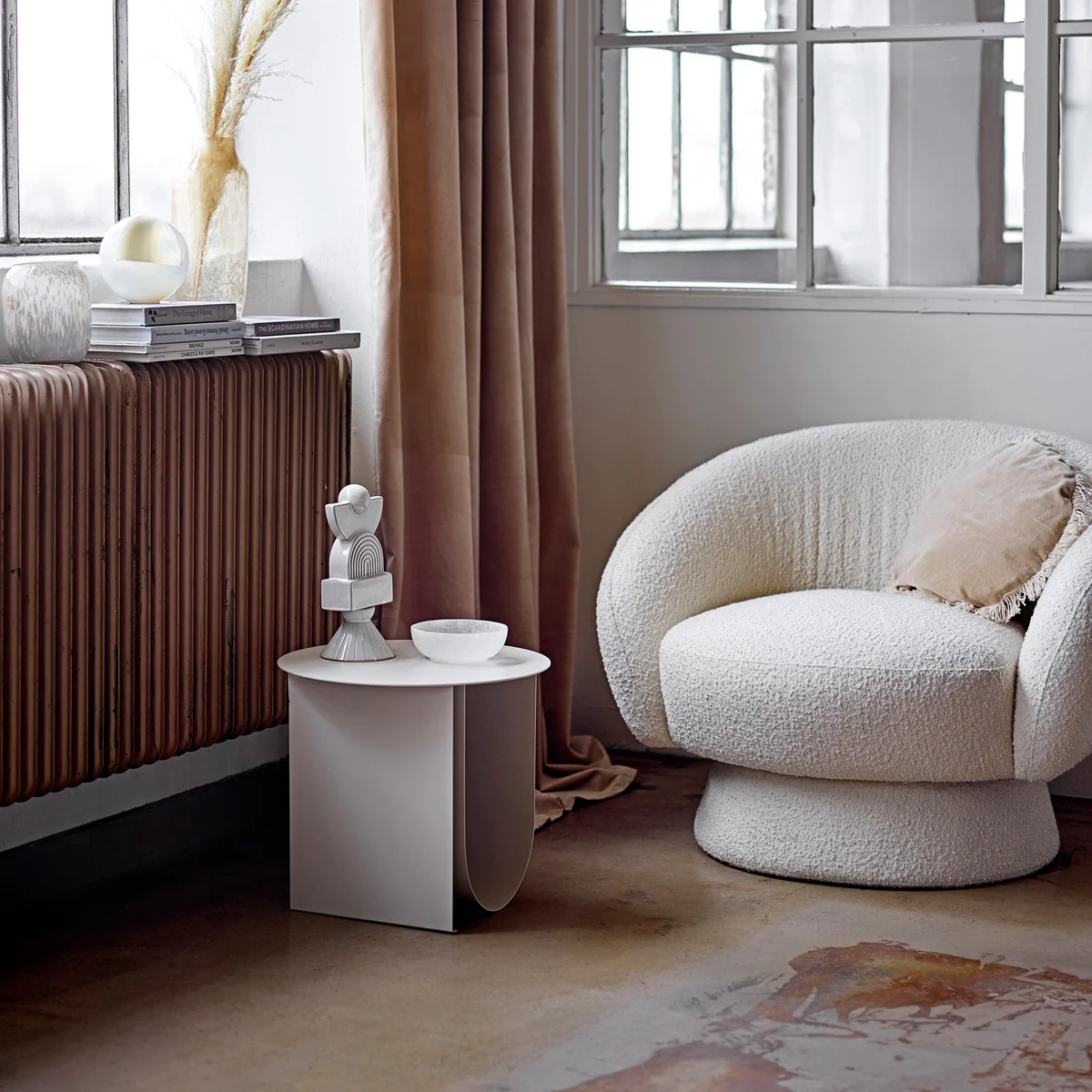 De Cher bijzettafel is gemaakt van metaal en heeft een poedercoating in een subtiele grijstint. Hij is ontworpen voor een belasting tot 10 kilogram.