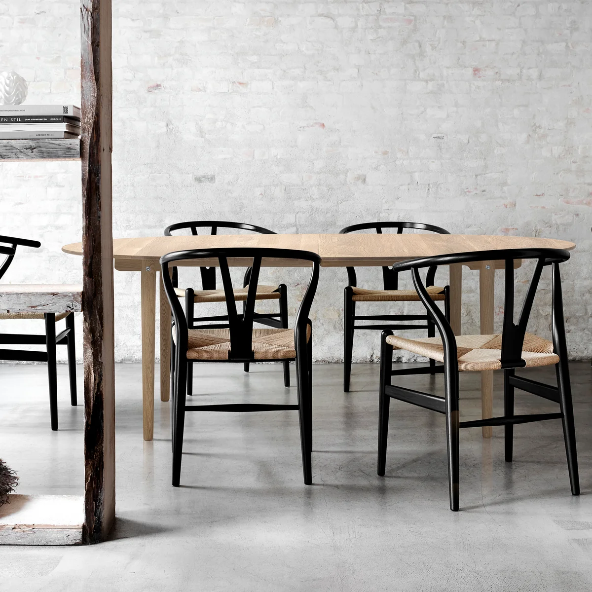 De CH338 van Carl Hansen is een uittrekbare eettafel van massief eikenhout die uitnodigt om met vrienden en familie te dineren. Met zijn afmetingen van 200 x 115 cm biedt de tafel comfortabel plaats aan 8-10 personen. Dankzij de extra verkrijgbare inlegplaat met een breedte van 60 cm kunnen nog eens twee personen aan de tafel zitten. De CH338 kunnen tot twee extra inlegbladen worden geplaatst, zodat de tafel met maximaal vier zitplaatsen kan worden uitgebreid.