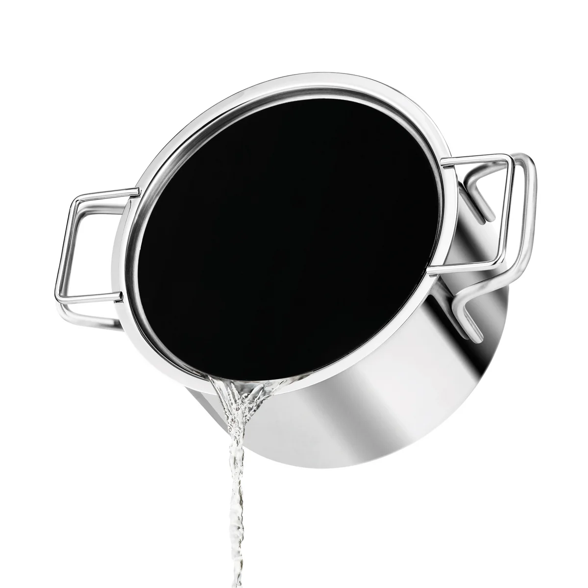 Elk deksel heeft zijn speciale functie. Het decanteerdeksel, bijvoorbeeld, is perfect voor het koken van pasta en bijzonder geschikt voor de roestvrijstalen pot met pastaschilferset. Daarnaast zijn er klassieke deksels van glas of roestvrij staal verkrijgbaar. Ze passen bij de kleine (Ø 16 cm) of de grotere potten en pannen (Ø 20 cm). De roestvrijstalen deksels inspireren ook met hun handgrepen die koel blijven tijdens het koken, zodat het deksel aan en uit kan worden gedaan zonder dat er handschoenen nodig zijn.