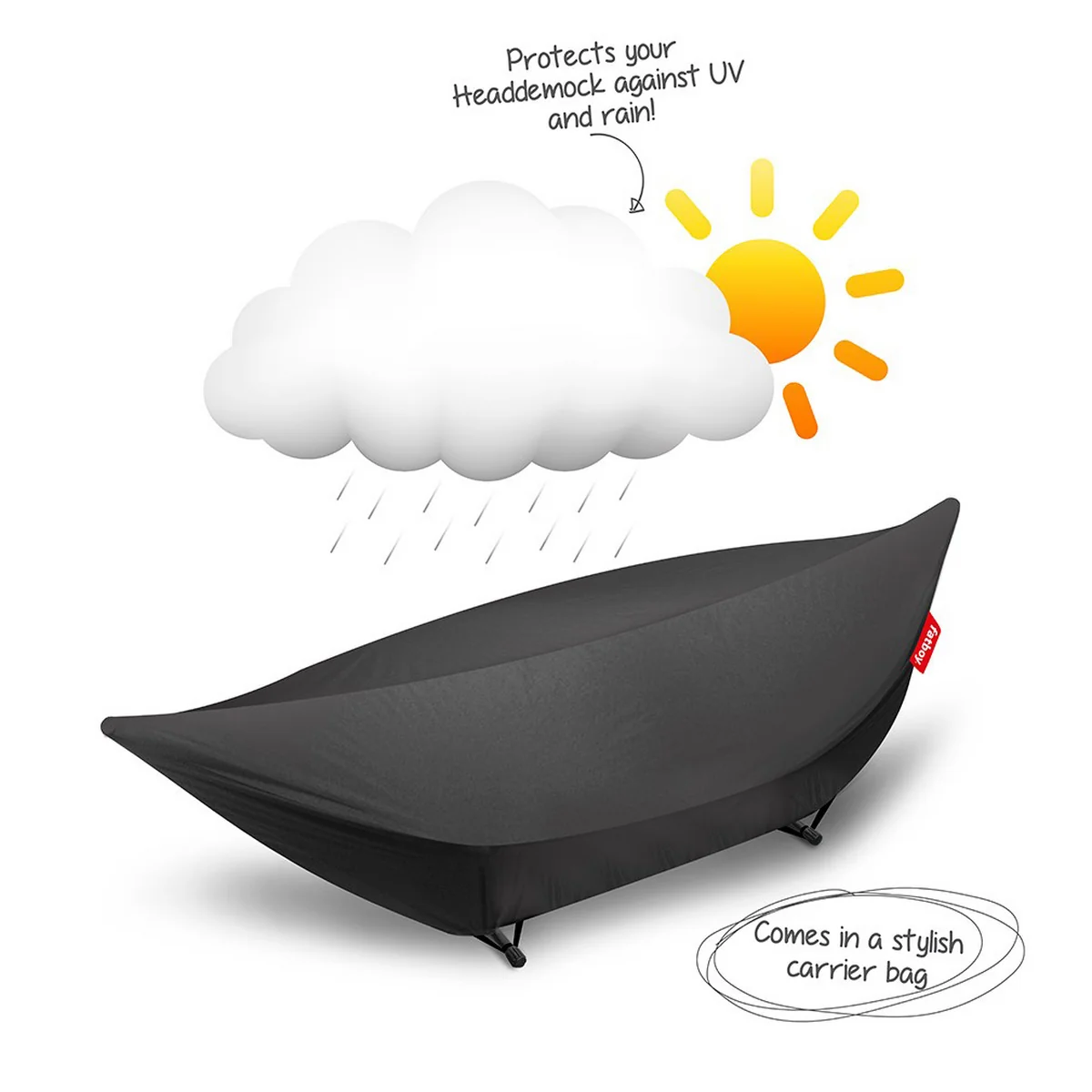 De Headdemock hangmathoes Cover van Fatboy beschermt je hangmat betrouwbaar tegen vuil zoals bladeren, stof, vogelpoep en schadelijke UV-stralen. Het houdt het oppervlak schoon en voorkomt verbleking door zonlicht.
