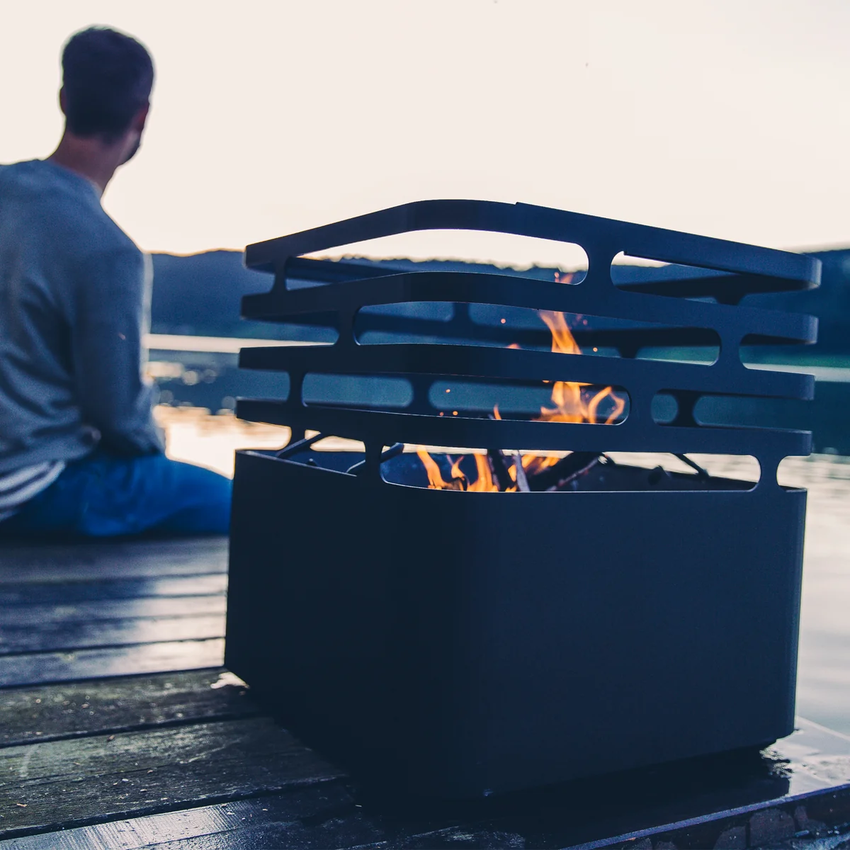 De Cube van höfats is veel meer dan alleen een vuurkorf. Het is waarschijnlijk de veiligste vuurkorf ter wereld die op commando uitgaat. De bamboe steunplank maakt van de vuurkorf een krukje, een bankje of een kleine bijzettafel.
