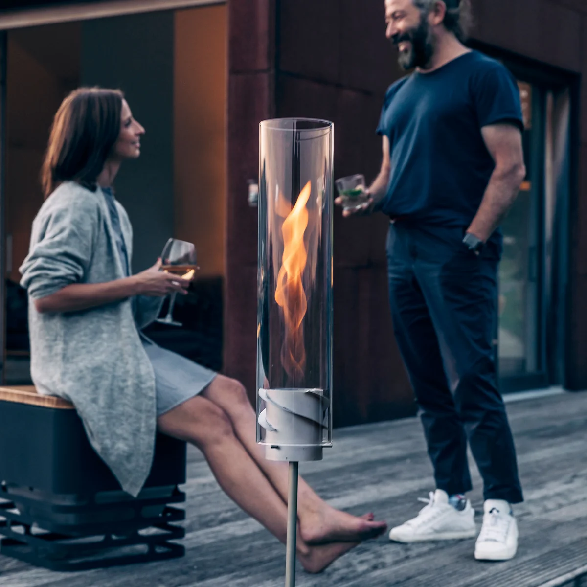 Met de voet kan de Spin-fakkel worden omgevormd tot een tafelvuur. Het spel wordt eenvoudigweg geruild voor de voet en er ontstaat een gezellig vuurtje op de tuintafel.