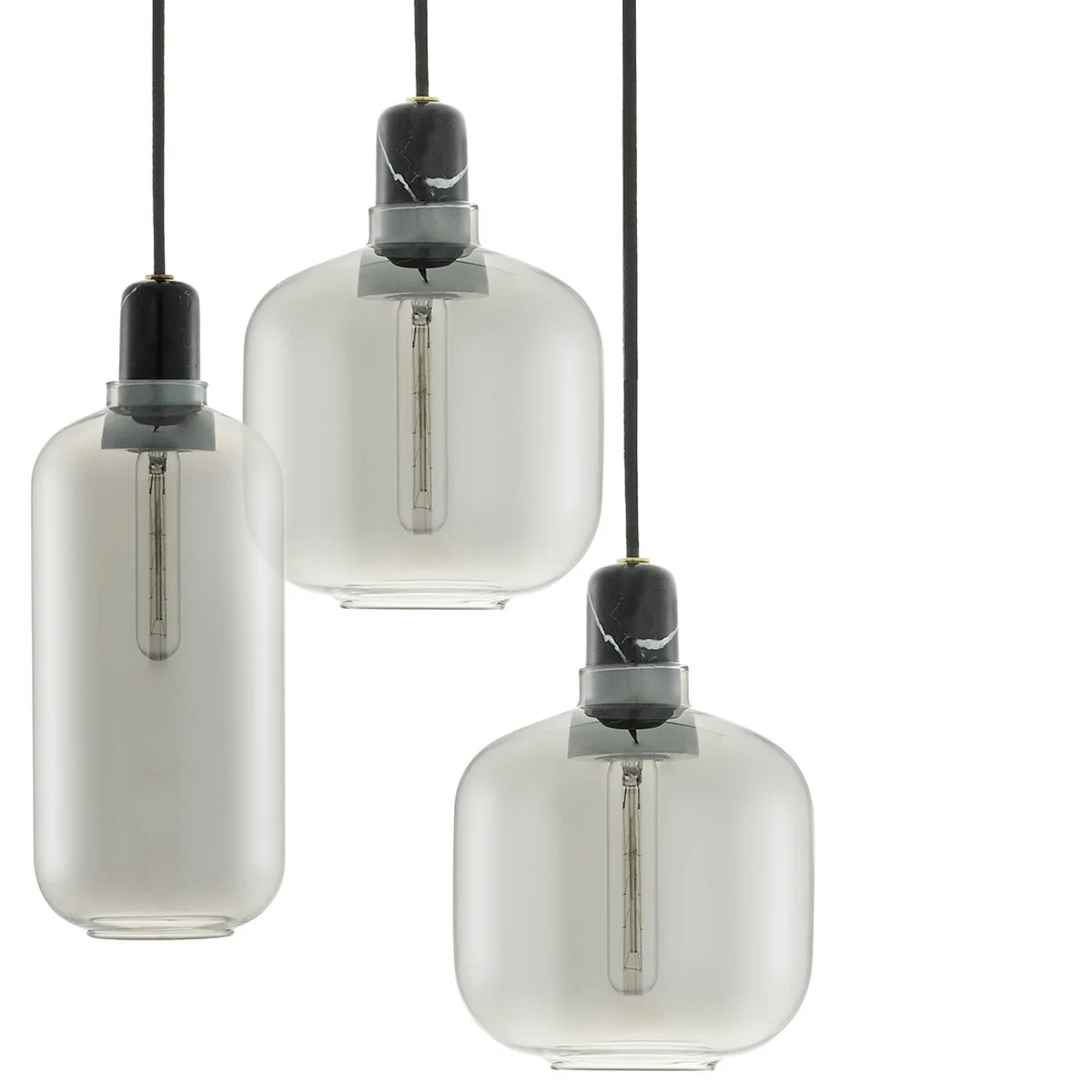 Lamp serie met hifi-inspiratie: De Deense ontwerper Simon Legald heeft voor Normann Copenhagen de verfijnde Amp-verlichtingsserie gemaakt. Glas en marmer zorgen voor visuele lichtheid en sensuele zwaarte. Een look die nostalgisch en toch modern is. Het glas voor de Amp hanglamp kan apart besteld worden voor het geval het breekt en is verkrijgbaar in elke vorm van de hanglamp serie en in elke bijpassende kleur.