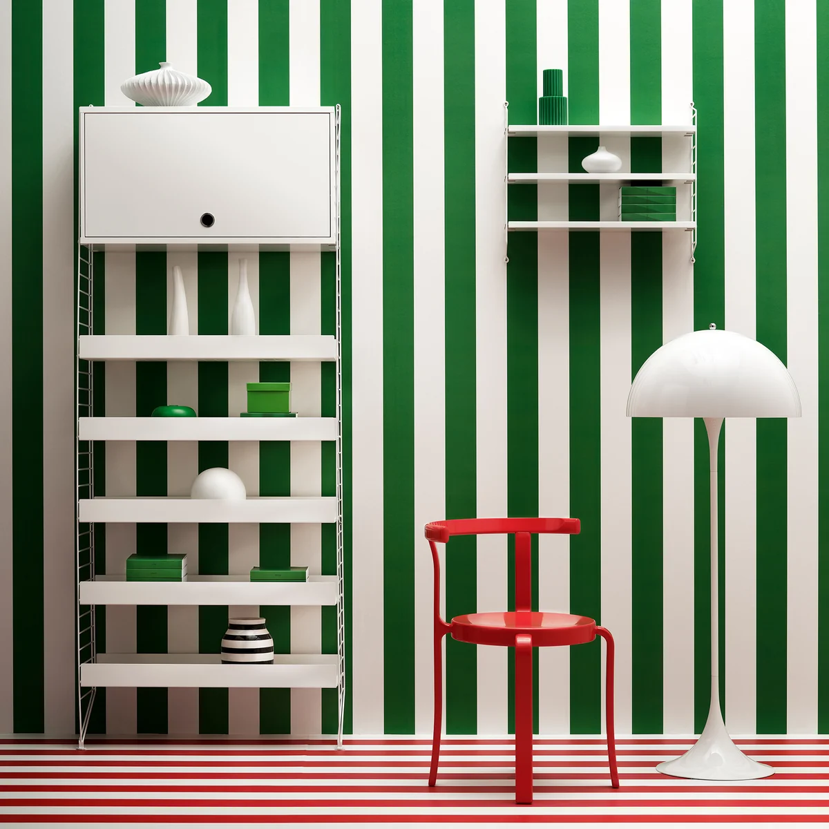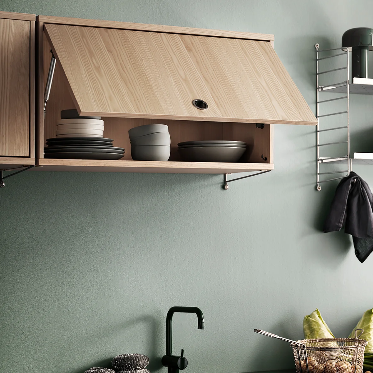 Het kastelement met draaideur van de fabrikant String overtuigt door zijn veelzijdigheid. De minimalistische kast heeft een breedte van 78 cm en een diepte van 30 cm. De hoogte van de kast is 42 cm. Hij heeft ook een verstelbare binnenplank en kan naar wens worden uitgerust met 30 cm diepe legplanken. Het kastelement met draaideur kan naar wens in de woonkamer, slaapkamer, badkamer of keuken worden geplaatst.