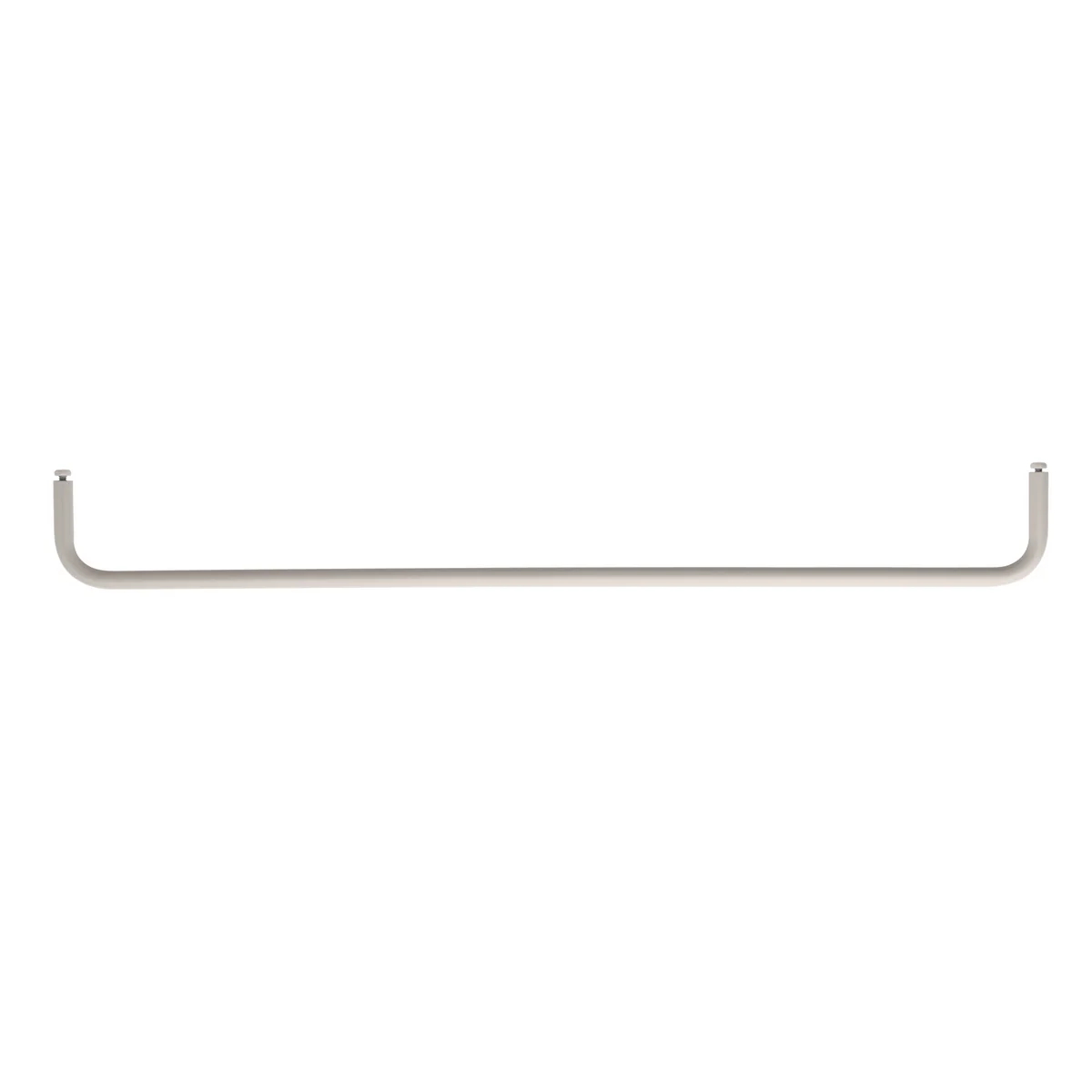 De stang wordt eenvoudig in het geperforeerde metaal van de planken gehaakt. Hij is gemaakt van metaal en verkrijgbaar in verschillende kleuren en lengtes.