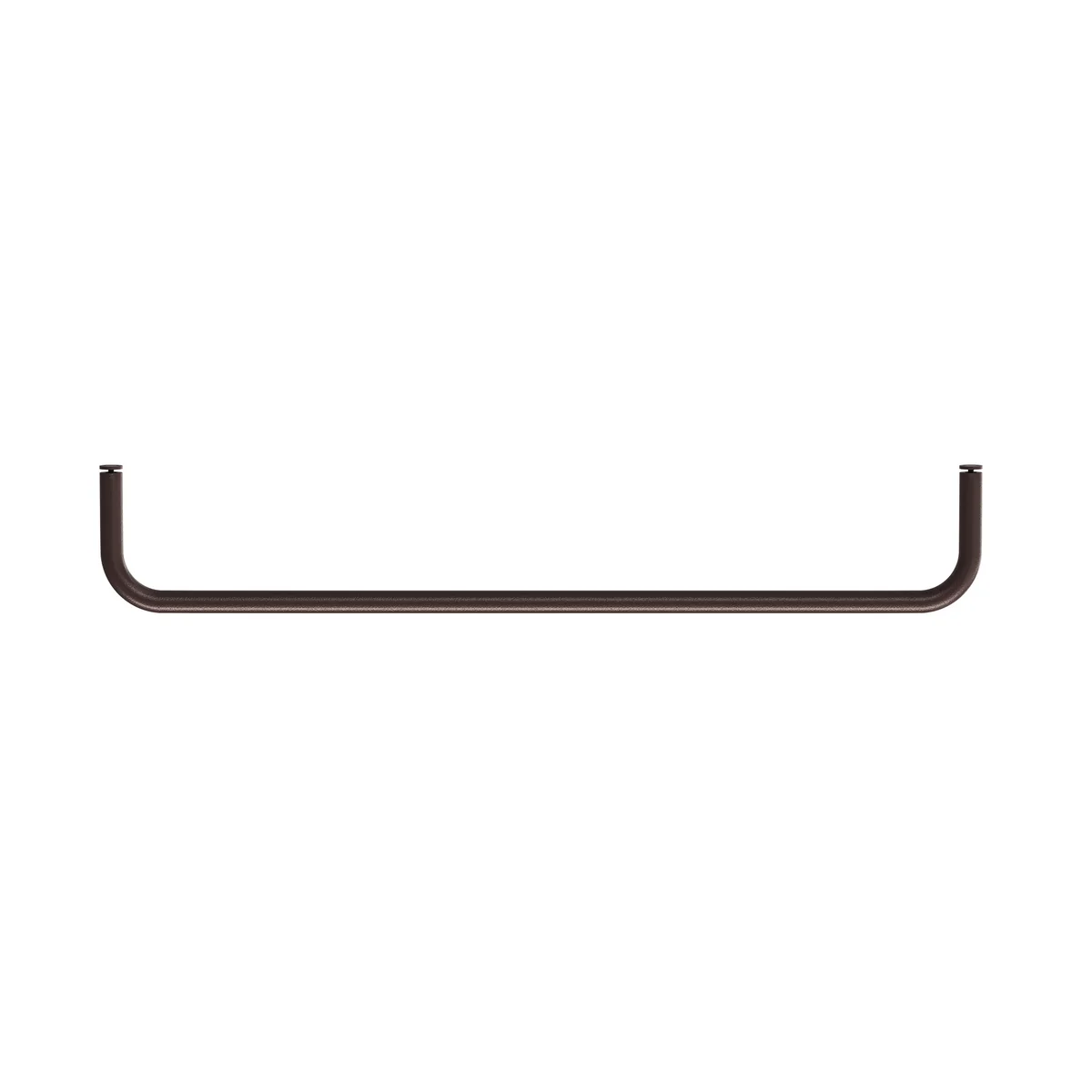 De stang wordt eenvoudig in het geperforeerde metaal van de planken gehaakt. Hij is gemaakt van metaal en verkrijgbaar in verschillende kleuren en lengtes.