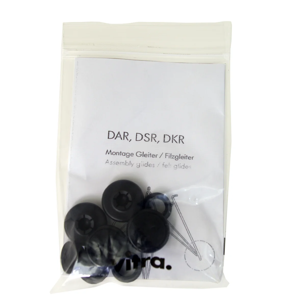 De viltglijders zijn geschikt voor de Eames Plastic Chairs DAR, DSR en DKR. Als de praktische viltglijders eenmaal aan de stoel zijn bevestigd, beschermen ze de stoel, de vloer en verminderen ze het geluid dat kan worden veroorzaakt wanneer de stoel wordt verplaatst.