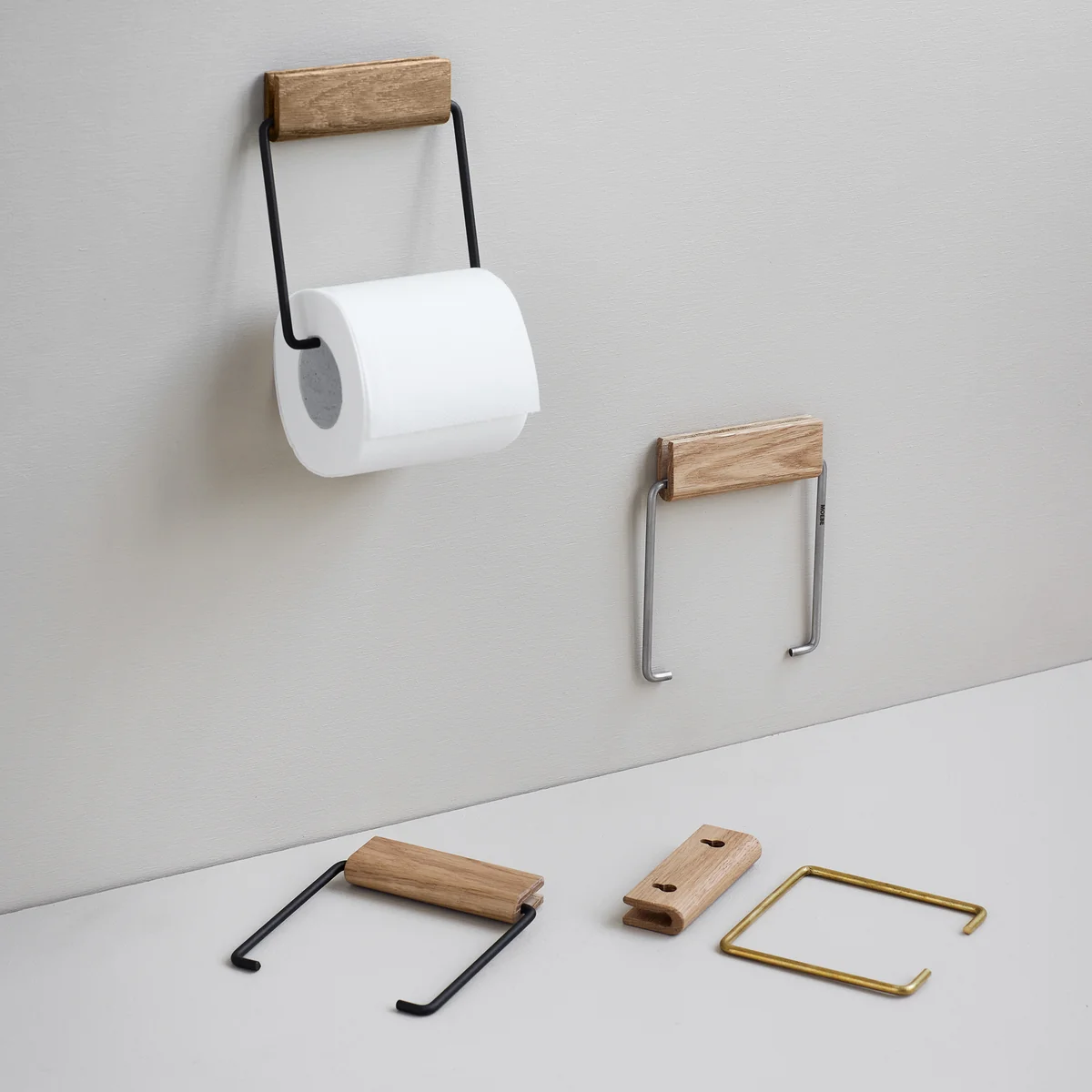 De toiletpapierhouder van Moebe presenteert zich in een moderne en opvallende look. De combinatie van twee verschillende materialen creëert een contrasterende esthetiek die prachtige details in de badkamer plaatst. De houten houder kan gemakkelijk aan de muur worden bevestigd, terwijl de metalen draad de rollen toiletpapier met een gerust hart draagt. De twee componenten geven de houder een stijlvolle uitstraling die op vele manieren kan worden gecombineerd.