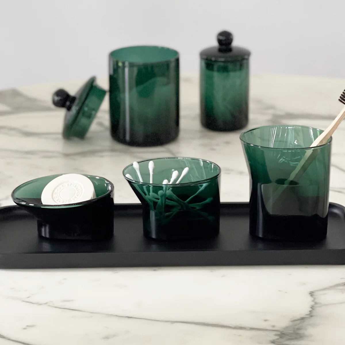 De Cala badkameraccessoires van XLBoom vormt een stijlvol en luxueus detail in de badkamerinrichting. De set bestaat uit drie containers die naar wens kunnen worden gebruikt voor zeep, tandenborstels en watten of andere cosmetische producten. De containers zijn handgevormd en mondgeblazen, waardoor elk stuk uniek is. De containers zijn verkrijgbaar in verschillende uitvoeringen en kunnen worden gecombineerd met verschillende decoratieve stijlen.