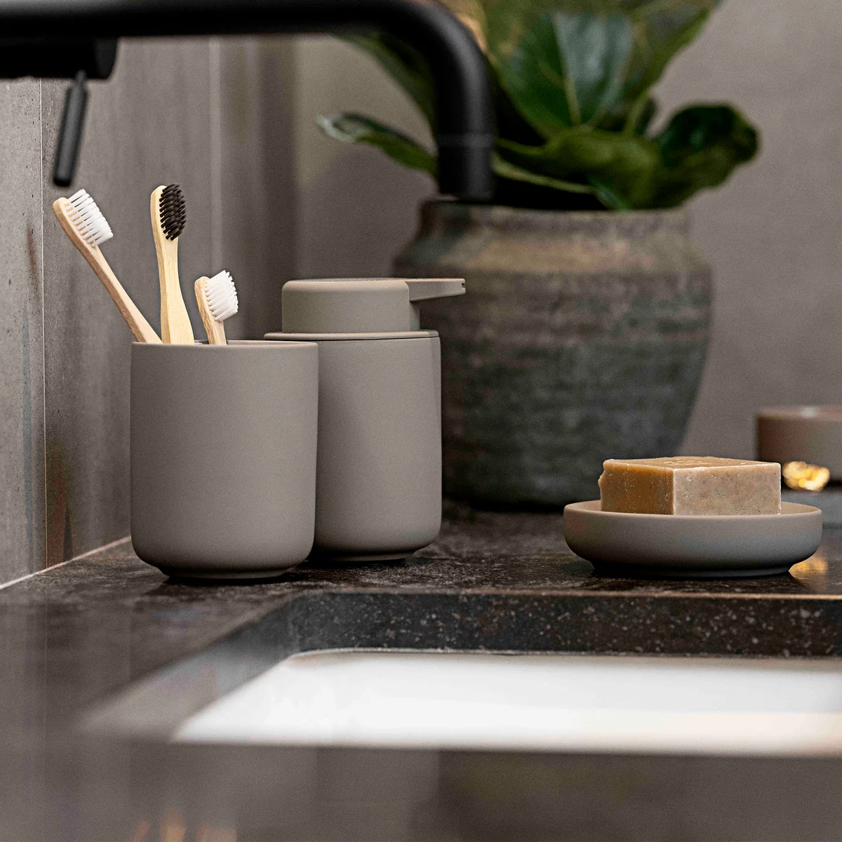 De Ume tandenborsteltrommel maakt deel uit van de gelijknamige serie van Zone Denmark die bestaat uit hoogwaardige badkameraccessoires. Net als alle producten uit de serie wordt de tandenborstelbeker gekenmerkt door zijn minimalistische ontwerp, zachte contouren en speciale afwerking. De mok is gemaakt van robuust steengoed, dat vervolgens is voorzien van een fluweelzachte coating. Dit zorgt niet alleen voor een verfijnde uitstraling, maar ook voor een aangenaam gevoel.