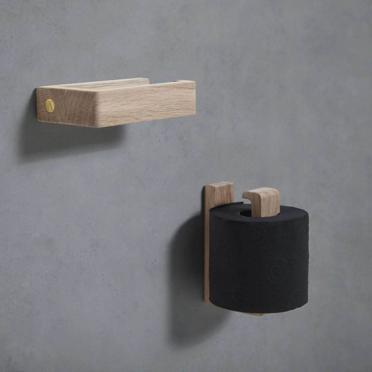 De toiletrolhouder van Andersen Furniture maakt indruk met zijn minimalistische ontwerp, waardoor de houder perfect past in verschillende badkamers. De houder is gemaakt van eiken- of essenhout en kan zowel verticaal als horizontaal aan de muur worden bevestigd.