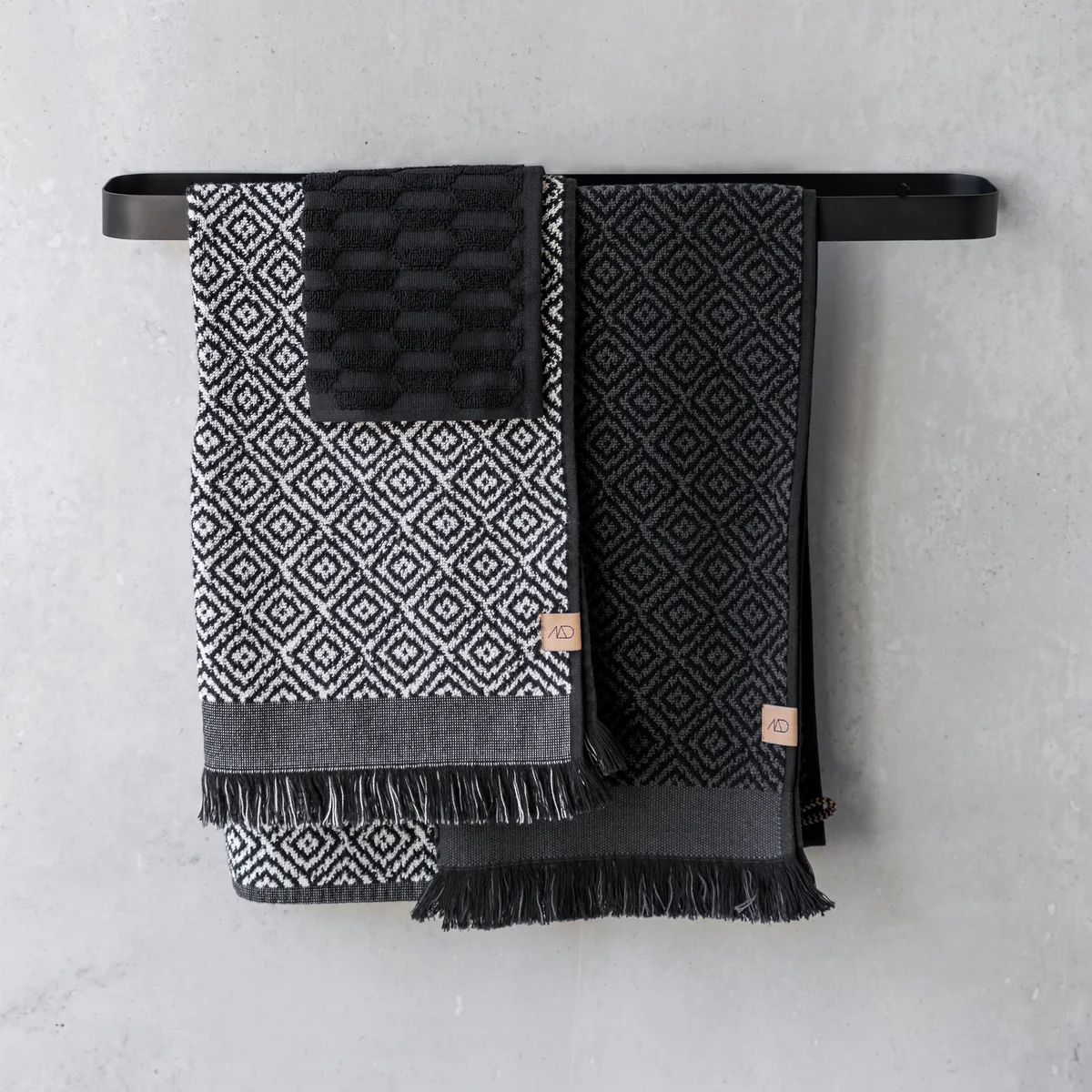 De eenvoudige lijnen creëren een industriële look die past in elk interieur. De minimalistische handdoekhouder is zeer geschikt voor zowel natte als droge handdoeken en is verkrijgbaar in verschillende uitvoeringen.
