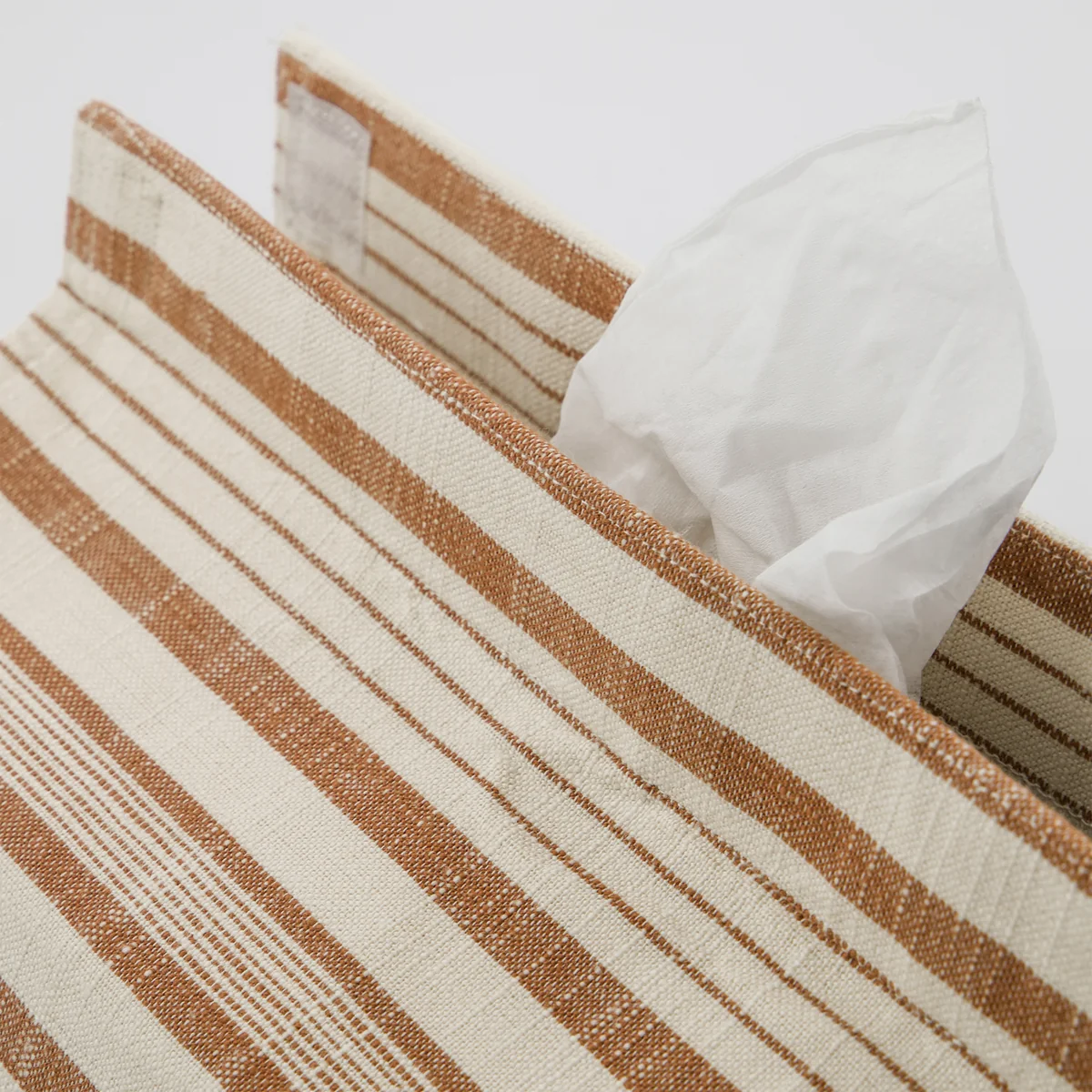 De Tissue tissuebox van Meraki verandert praktische alledaagse items in een decoratief woonaccessoire. Gemaakt van 100% OEKO-TEX-gecertificeerd katoen met een garengeverfd patroon, geeft het een subtiele, natuurlijke elegantie aan de badkamer, slaapkamer of woonkamer. De hoes omsluit de tissuebox, houdt tissues altijd bij de hand en zorgt voor een opgeruimd geheel. Met zijn tijdloze, harmonieuze ontwerp past hij moeiteloos in allerlei interieurstijlen.