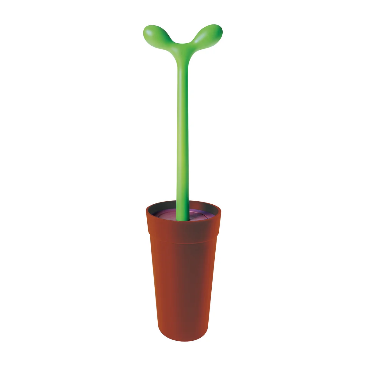 "Merdolino" lijkt op het eerste gezicht op een plant. De toiletborstel zelf ziet eruit als een cactus of iets dergelijks en het parkeerapparaat ziet eruit als een bloempot.