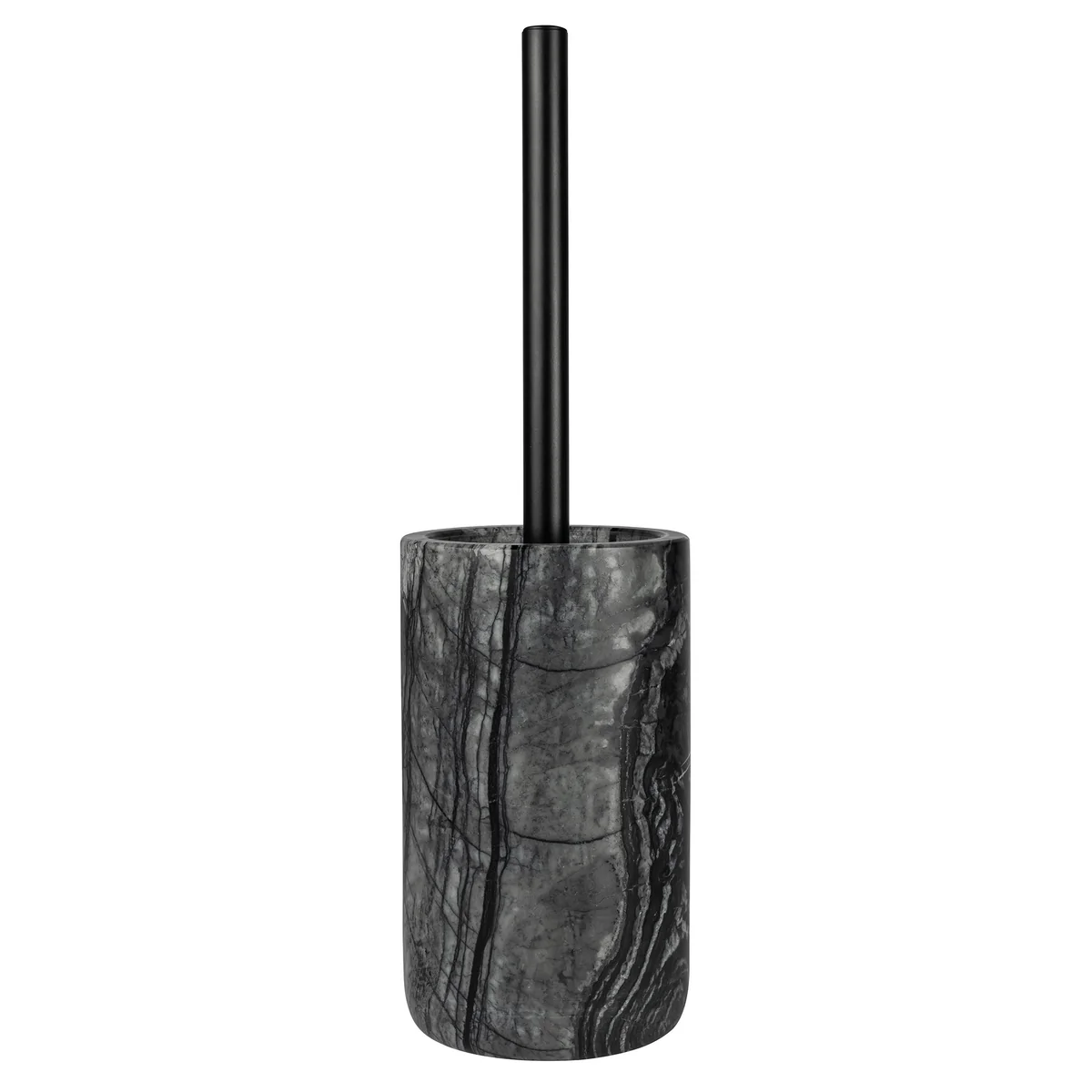 Het gebruik van donker marmer geeft de toiletborstel een elegante en tijdloze uitstraling. Het marmer kan verschillende natuurlijke aders en kleurtinten hebben, waardoor elk stuk uniek is.