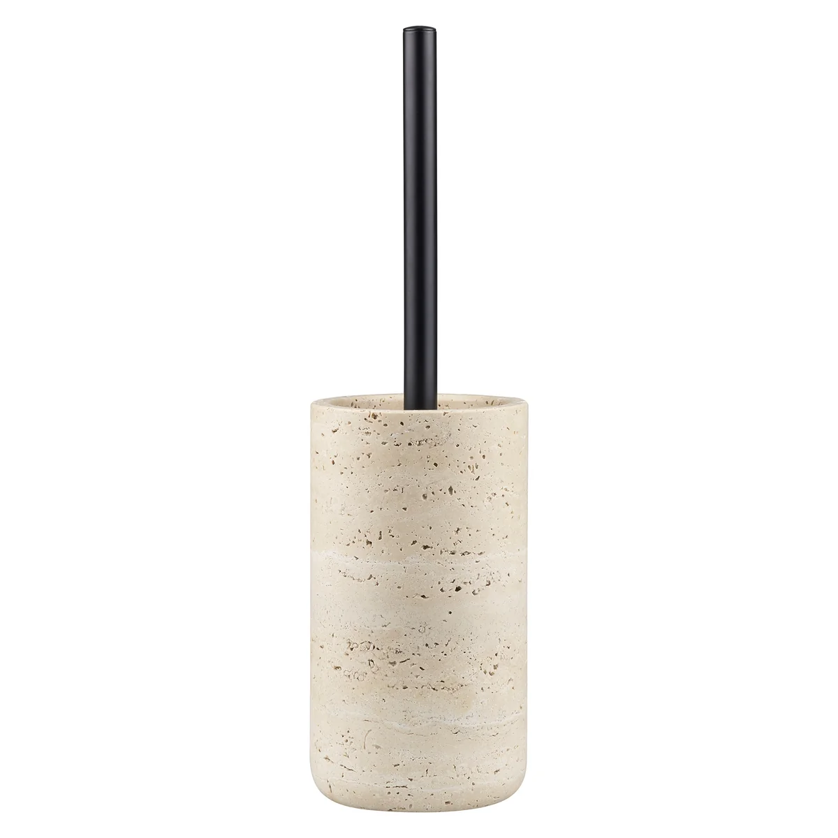 Met zijn stabiele basis en stevige gewicht staat de toiletborstelhouder stevig op de vloer. Hij is uitgerust met een zwart metalen handvat en een bijpassende borstelkop. Kan gecombineerd worden met andere items uit de Travertine collectie om een harmonieus en stijlvol badkamerontwerp te creëren.