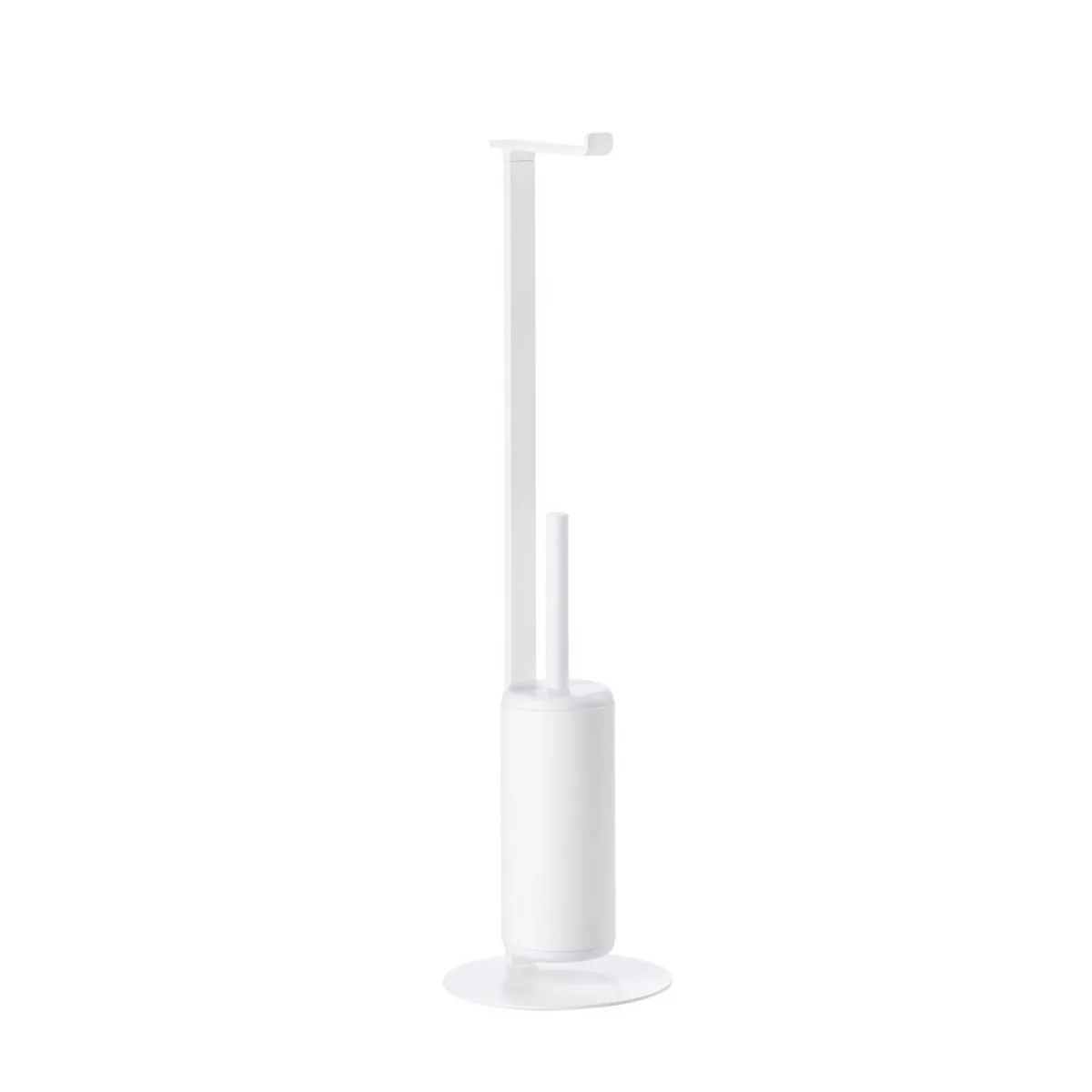 De Rim toiletbutler van Zone Denmark biedt een slanke, functionele oplossing voor je badkamer. Toiletpapier en borstel zijn gecombineerd in een vrijstaand ontwerp - zonder schroeven of muurbevestiging. De slanke houder past gemakkelijk in kleine badkamers en kan gemakkelijk worden verplaatst dankzij de praktische handgreep aan de bovenkant. De borstel staat discreet en binnen handbereik in het onderste gedeelte, terwijl het heldere, elegante ontwerp perfect past bij de rest van de Rim serie .