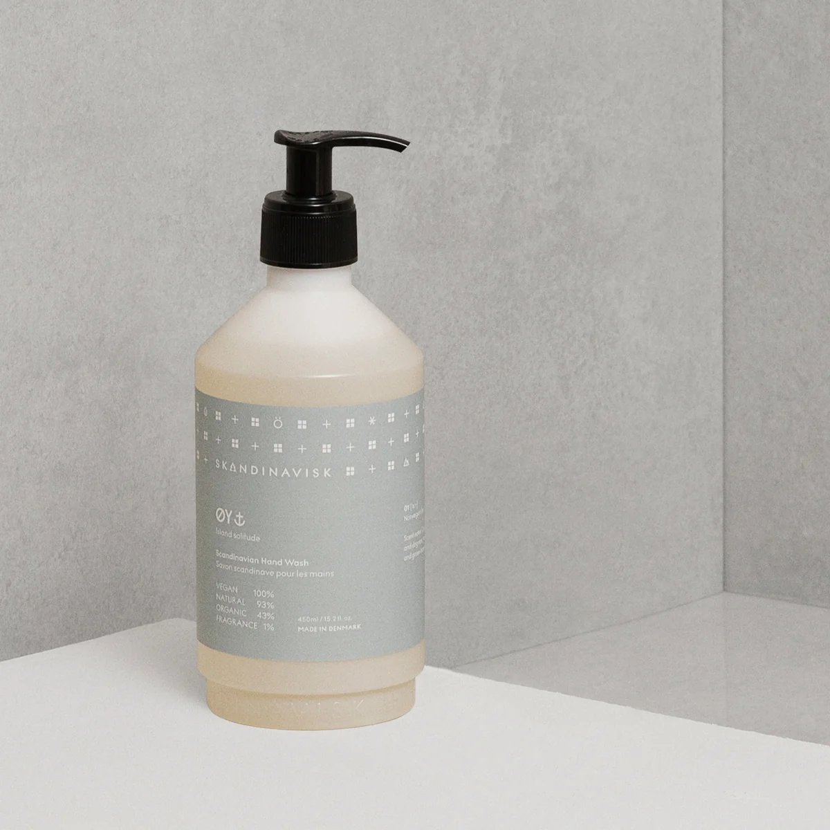 De handzeep van Skandinavisk is een must-have in elke badkamer dankzij de reinigende en hydraterende eigenschappen. De veganistische handzeep bestaat uit biologisch aloë vera bladextract, Deens bronwater en biologische glycerine, waardoor de zeep geschikt is voor alle huidtypes. Eén pompje is genoeg. Laat je handen goed schuimen en spoel ze daarna af.