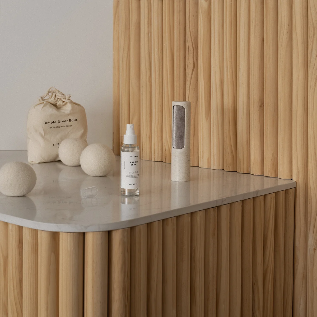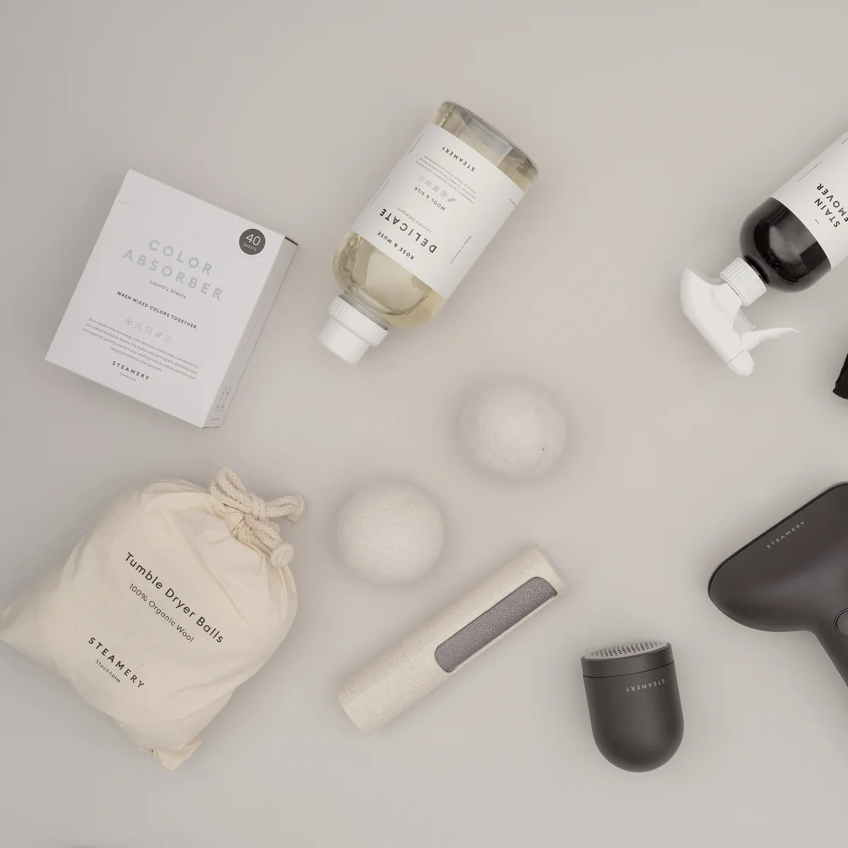 De 100% wollen droogballen van het Zweedse bedrijf Steamery zijn een slim, rendabel en duurzaam alternatief voor wasverzachters en plastic droogballen. De balletjes verkorten de droogtijd in de wasdroger en elimineren tegelijkertijd statische elektriciteit. Omdat de balletjes het textiel ook verzachten, is het niet nodig om een vloeibare wasverzachter te gebruiken.