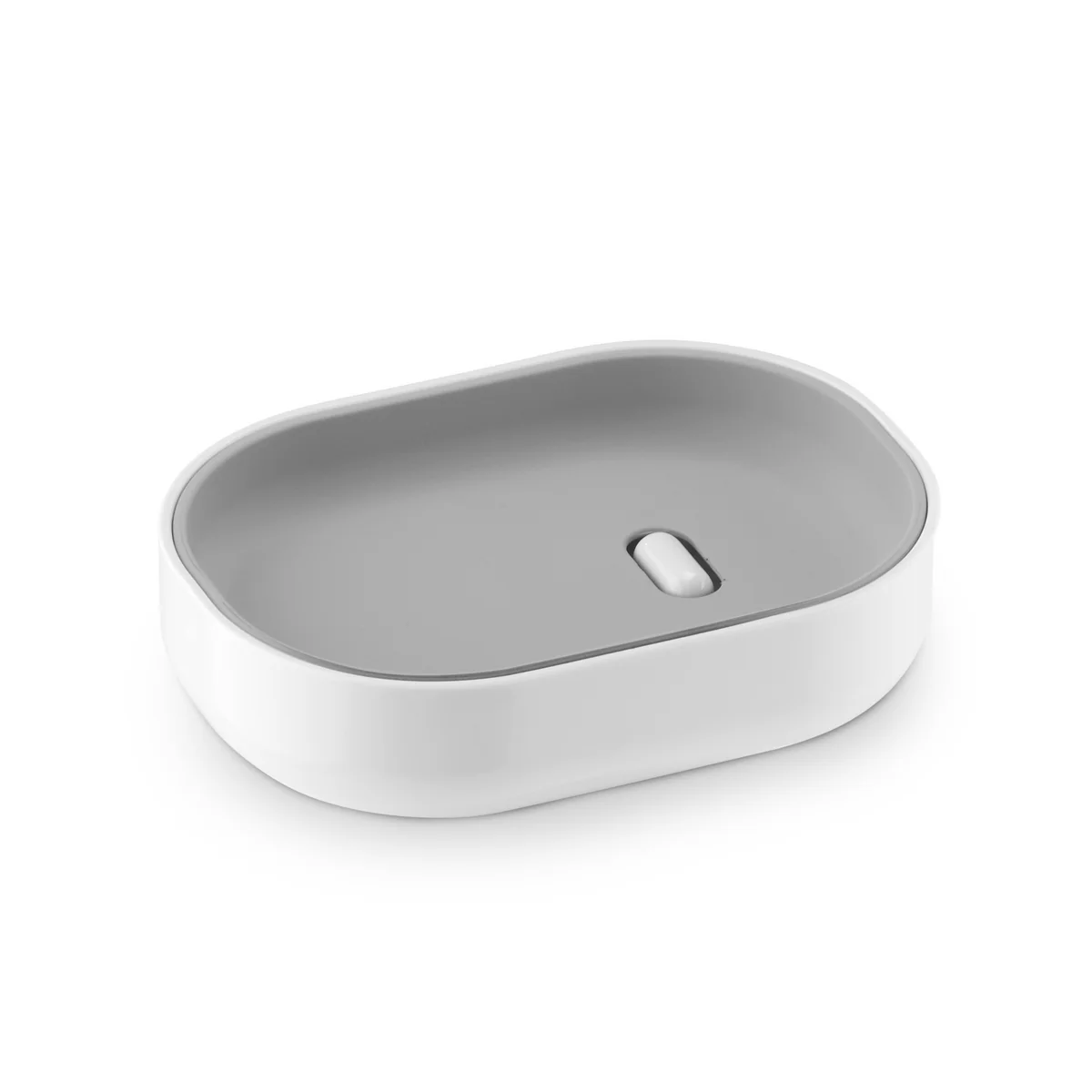 Het Lunar zeepbakje is - net als alle andere producten uit de collectie - bijzonder gemakkelijk te reinigen dankzij de afgeronde hoeken. Het zeepbakje bestaat uit twee delen. Een witte buitenste schaal en een gekleurde inzet. Dankzij de opening in het inzetstuk kan het zeepwater vrij wegstromen, waardoor de schaal schoon blijft. Een klein staafje in de binnenste kom zorgt ervoor dat de zeep gemakkelijk kan drogen.