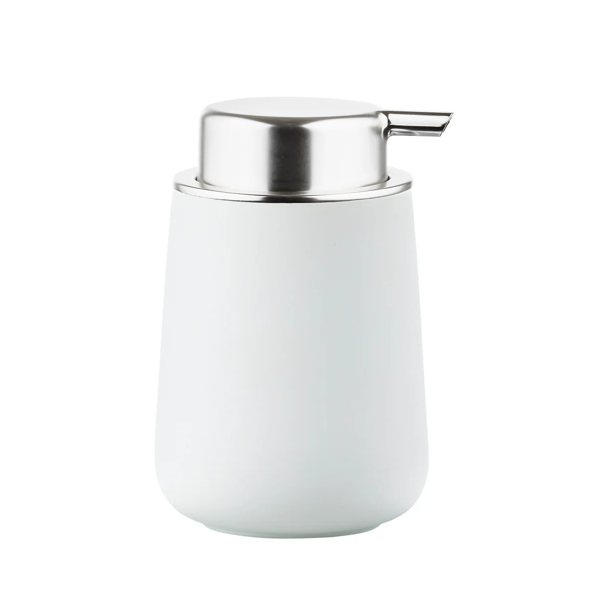 De Nova zeepdispenser van Zone Denmark maakt indruk met zijn tijdloos eenvoudige uiterlijk. Hij is gemaakt van porselein met Soft Touch coating in verschillende kleuren en kunststof in roestvrijstalen look en behoort tot de gelijknamige badkamercollectie van ontwerper Thomas Dudzinski.
