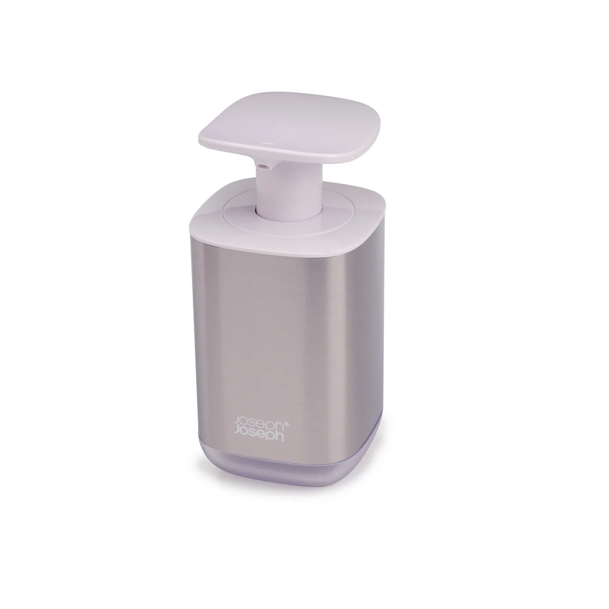 De Presto Steel Zeepdispenser van Joseph Joseph heeft een bijzonder grote pompkop, die de bediening met de pols of onderarm mogelijk maakt. Deze manier van aanbrengen is bijzonder hygiënisch en ook praktisch in het geval dat uw handen bijzonder vuil zijn.