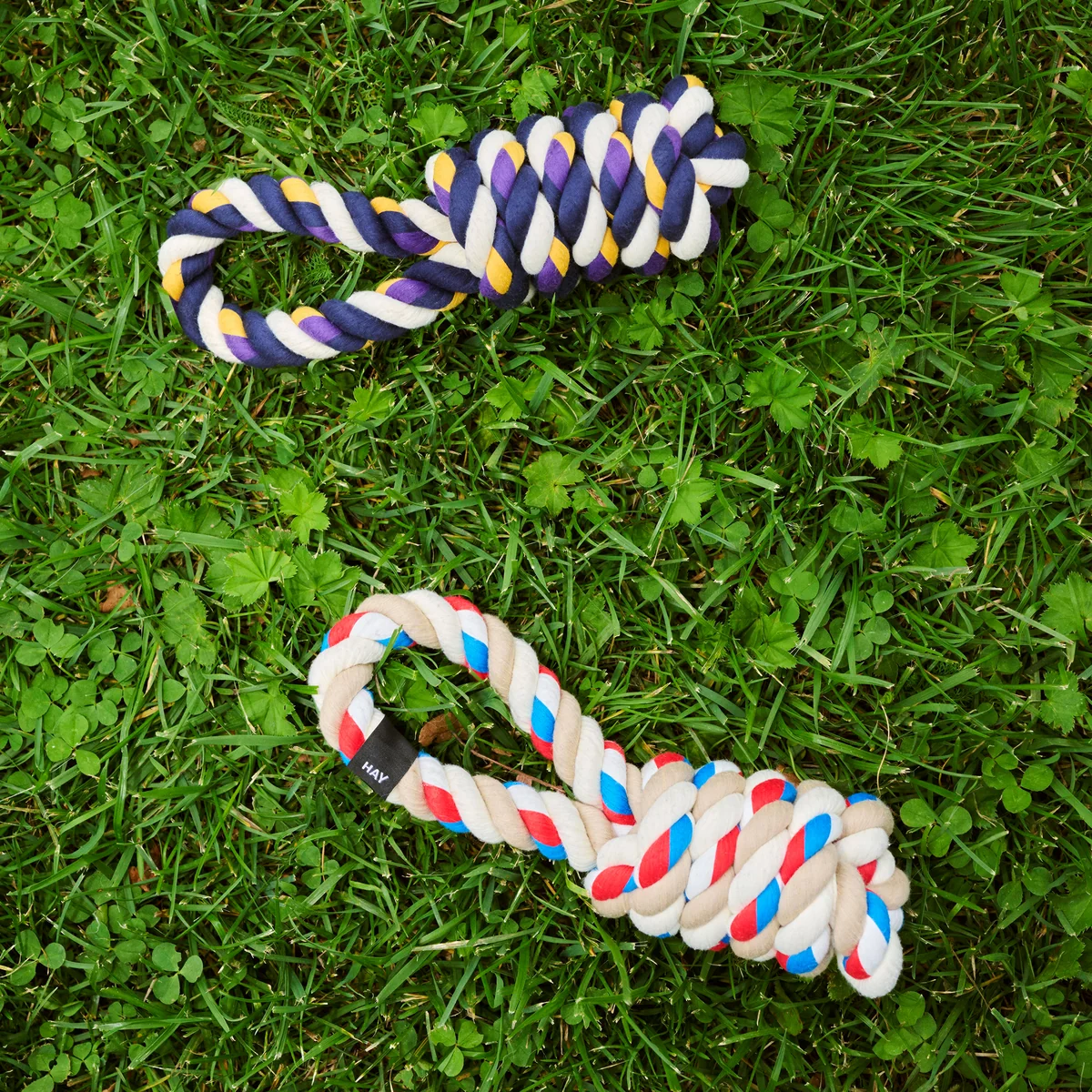 Het Dogs Rope speeltje is gemaakt van duurzaam, gerecycled polyester en heeft een gedraaid ontwerp met een knoop aan één uiteinde dat zowel kauwen als vastpakken stimuleert. Het is verkrijgbaar in verschillende designs en kleuren die de rest van de collectie naadloos aanvullen.