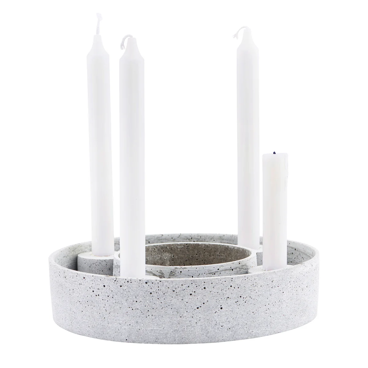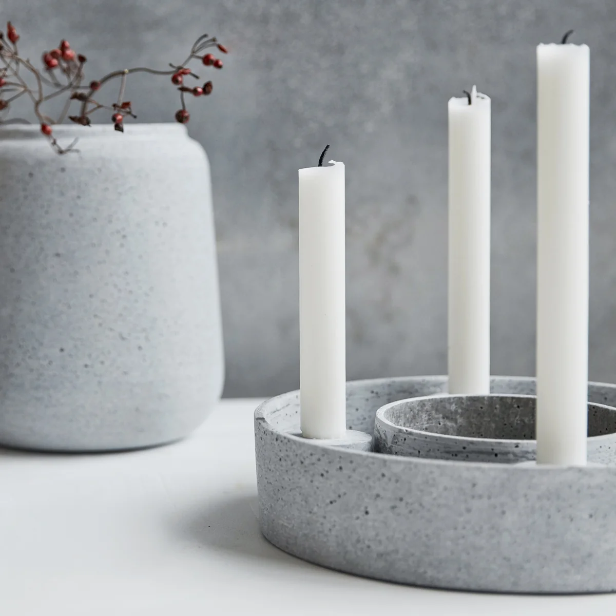 De The Ring kandelaar van House Doctor maakt indruk met zijn moderne look. De mooie, ronde kandelaar heeft ruimte voor vier kaarsen naar keuze en is uitgevoerd in een stoere, rustieke look. De kandelaar is gemaakt van gegoten steen, wat het hoogwaardige materiaal in de verschillende kleuren een zacht en stijlvol karakter geeft.