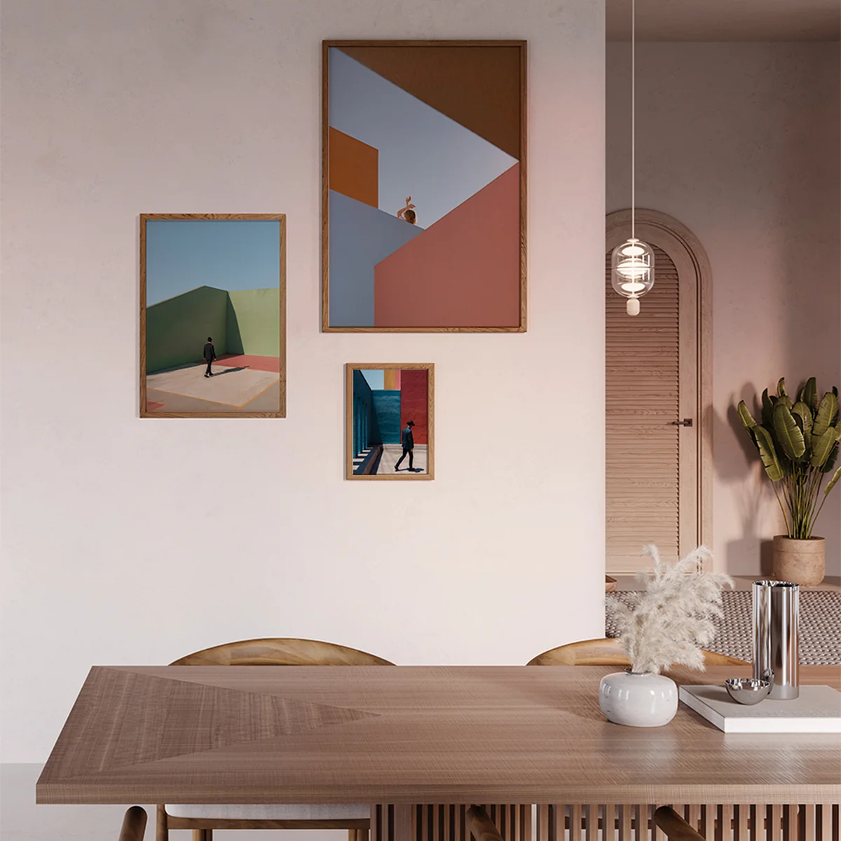 Alle posters van de Deense fabrikant Paper Collective worden in Denemarken geproduceerd volgens het Swan-certificeringssysteem. " Angular Afternoon " kan prachtig gecombineerd worden met "Shadowbox" en/of "Simplicity of the Moment" van Minh T.