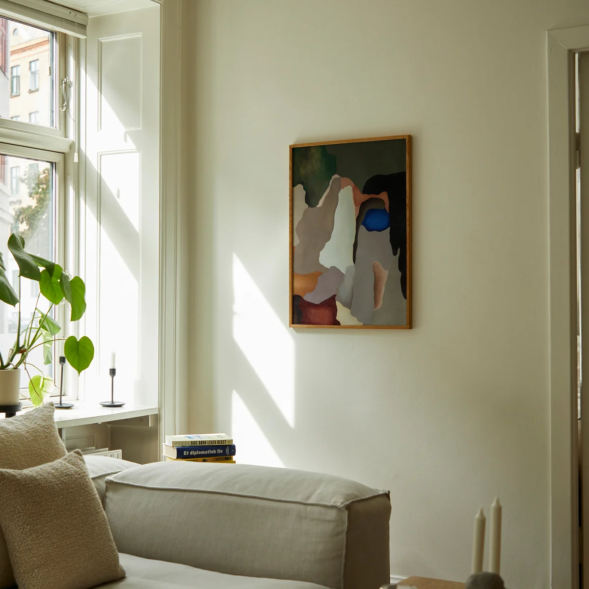 Het ontwerp van deze poster is een abstract meesterwerk dat de zintuigen aanspreekt. Het presenteert een levendig palet van kleuren en vormen die met elkaar interageren. in met elkaar in dialoog gaan. De combinatie van gedurfde en subtiele tinten creëert een visuele ervaring die uitnodigt tot reflectie en ontdekking.