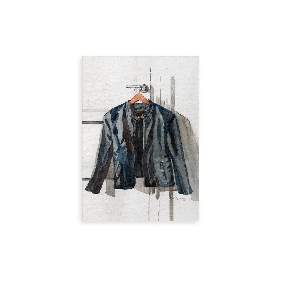 De Jacket Poster van Camila O'Gorman voor Paper Collective neemt een ereplaats in en schijnt een licht op de objecten in ons leven die wat extra aandacht nodig hebben. Lagen aquarel creëren een zachte maar zeer gedetailleerde compositie, terwijl licht en schaduw spelen met het leren jack.