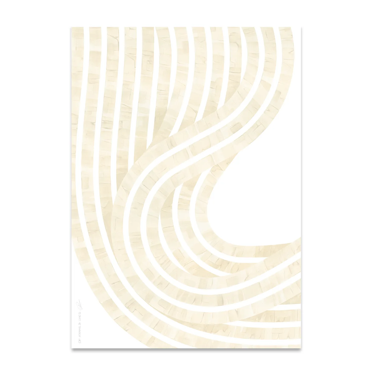 De Entropy Sand poster door Paper Collective stelt een zandstroom voor die in een bepaalde kromming stroomt. Drie rijen zand dansen uit de lijn en kruisen de andere rijen zand. Daar komt de naam van de poster Entropy vandaan. Entropie beschrijft een ongedefinieerde wanorde die het geheel een hogere esthetische kwaliteit geeft. Dit geeft het beeld een bijzondere dynamiek die de leefruimte een levendige noot geeft.