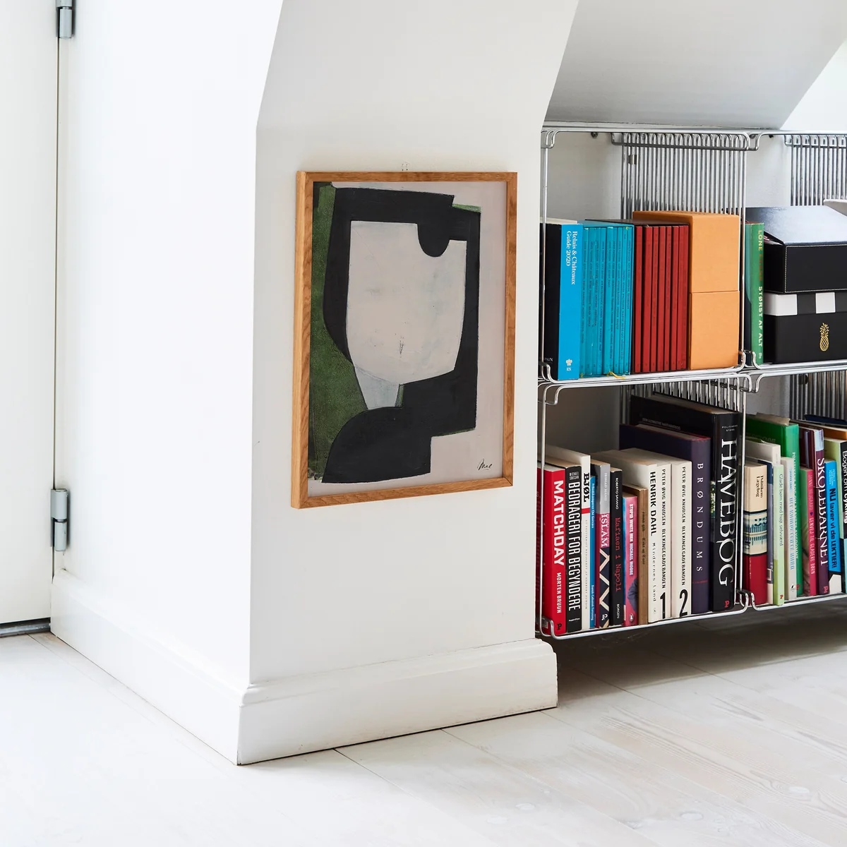 In Head-to-Head van Paper Collective van de lang samenwerkende kunstenaar Mae Studio voor Paper Collective wordt een neutraal zwart-wit palet onderbroken door rijke bosgroene accenten. De scherpe, maar organische vormen smelten samen tot een groep abstracte figuren die diep met elkaar in gesprek zijn. Het kundige gebruik van acrylverf op fijne modelleerpasta brengt de twee abstracte vormen tot leven door hun texturen en diepten te benadrukken.