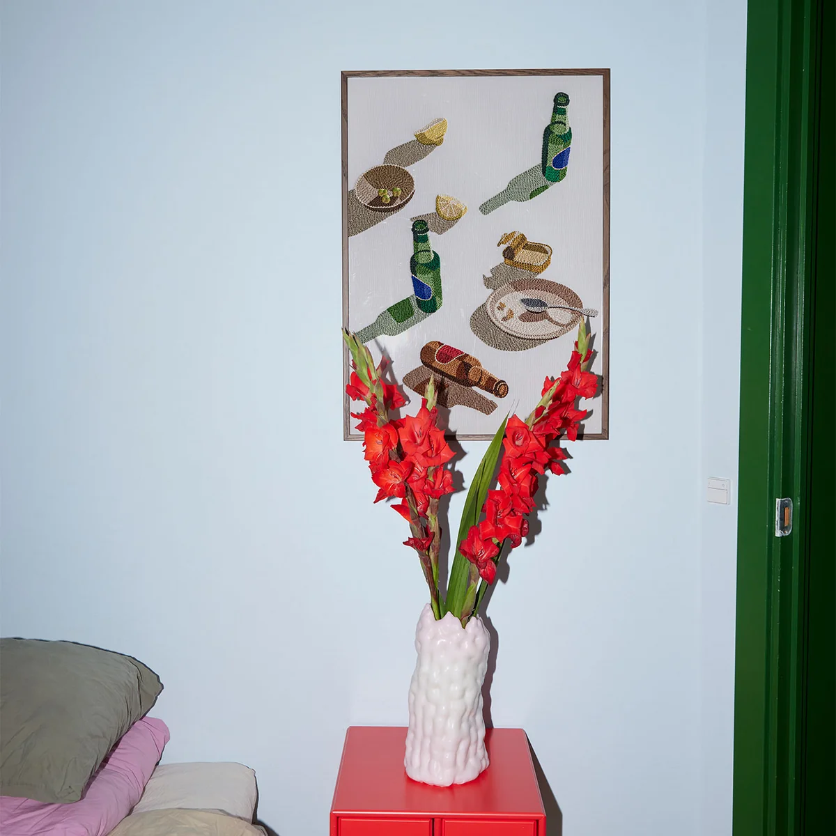 De Quarter to Four poster van Paper Collective combineert exclusieve kunst en hoge kwaliteit drukwerk in een uniek kunstwerk. Met haar eerste collectie voor Paper Collective vangt de gewaardeerde kunstenares Adrienna Matzeg de essentie van warme middagen en weerspiegelt ze de verbondenheid en vreugde die voortkomen uit het delen van drankjes en snacks. Op deze poster worden haar foto's omgezet in kunstzinnig, ingewikkeld borduurwerk, waardoor een droomachtige nostalgie ontstaat die haar snapshots in textielvorm bewaart. De poster Quarter to Four is gedrukt in 12-kleuren giclée kwaliteit op FSC-gecertificeerd papier in Denemarken en brengt een rijk kleurenpalet en expressieve motieven in elk huis.