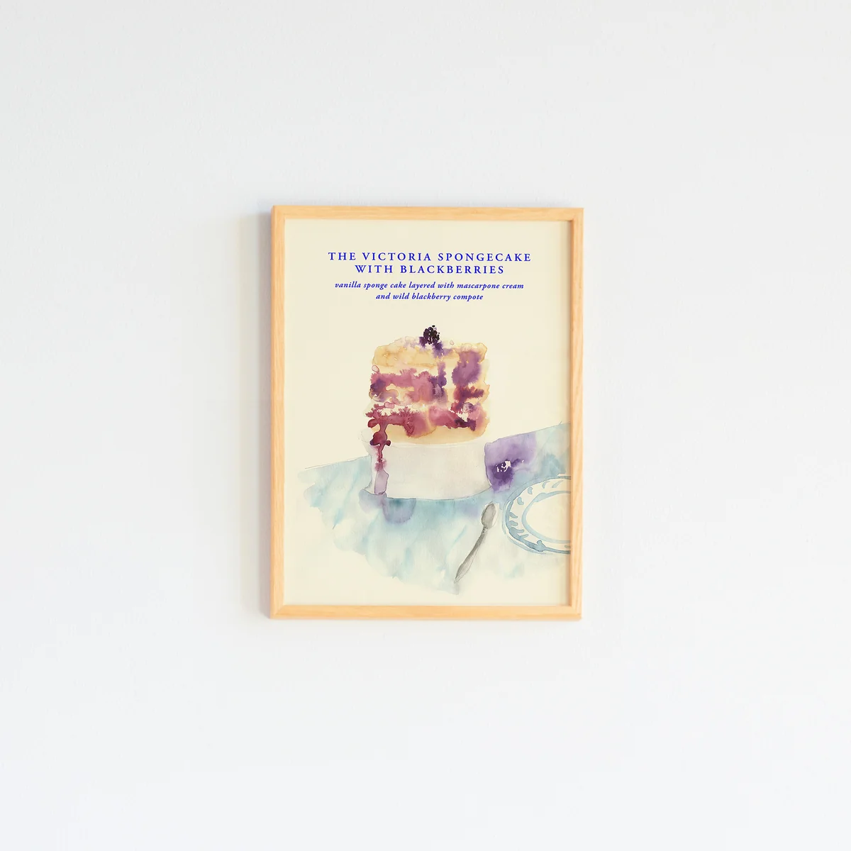 De The Victoria Spongecake poster van Paper Collective maakt deel uit van de kalenderserie A Year of Greens (2026) ontworpen door All The Way To Paris en viert de diversiteit van natuurlijke ingrediënten. In gedurfde aquarel- en potloodtinten toont het motief een weelderige biscuittaart gevuld met verse bessen. Het kleurenpalet van blauw en paars brengt levendige accenten aan op de muur en straalt tegelijkertijd een charmante, handgetekende rust uit. Ideaal voor keukens, eethoeken of elke andere ruimte waar verwennerij en design samenkomen.