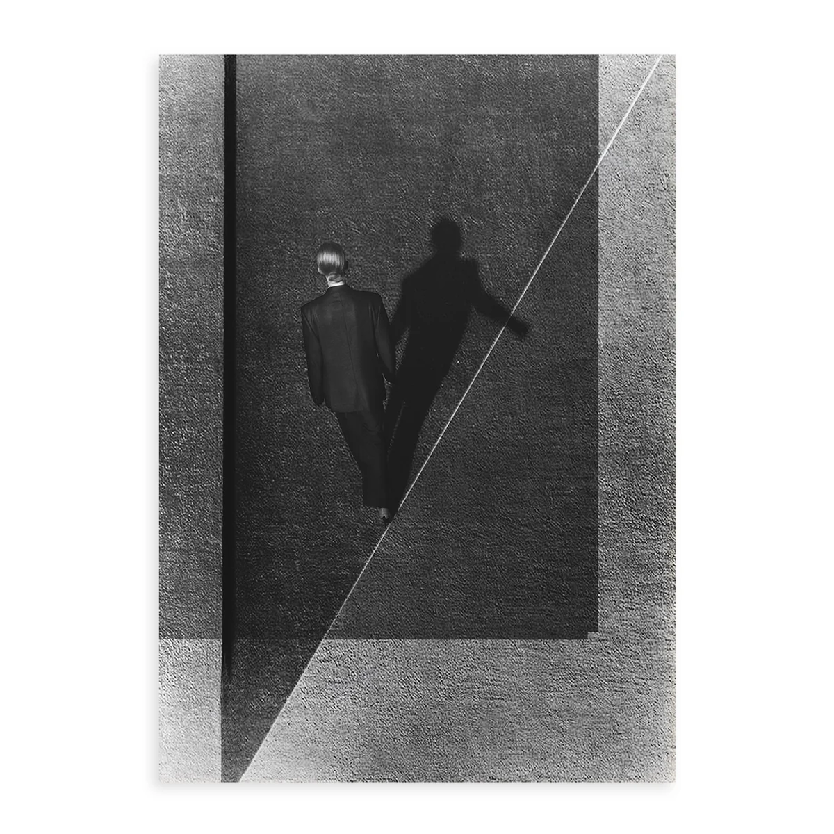 In deze compositie lijkt een enkele figuur over een denkbeeldig koord te bewegen, waarbij de schaduw de illusie van zweven doorbreekt. Deze unieke afbeelding tegen een grafisch landschap combineert abstracte elementen met een humanistisch tintje, waardoor "Walk The Line" een kunstwerk wordt met een bijzondere diepte en expressiviteit. De indrukwekkende speelsheid met visuele effecten trekt de kijker een wereld van illusie binnen en zet aan tot nadenken over evenwicht, grenzen en de menselijke zoektocht naar stabiliteit.