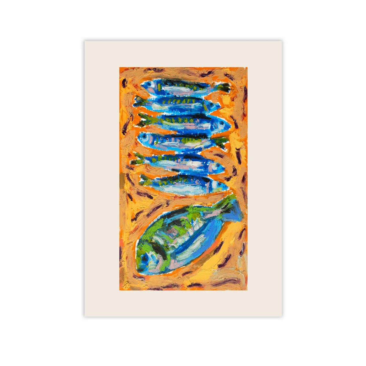 De Seven Fish Poster van Paper Collective is een fascinerend kunstwerk dat voortkomt uit de spontaniteit van het creatieve proces. De kunstenaar Adee Ardon werkt zonder schetsen of vaste planning en laat kleur en vorm samensmelten in een intens samenspel op een houten paneel - met behulp van dikke oliepastels. Door het idee van perfectie los te laten en zich over te geven aan therapeutische creativiteit, vangt de compositie de rijke diversiteit en mediterrane charme van de zee. De poster is gedrukt in 12-kleuren giclée kwaliteit op FSC-gecertificeerd papier in Denemarken en betovert met een weelderig kleurenpalet en indrukwekkende motieven die een vleugje mediterrane levensvreugde toevoegen aan elke kamer.