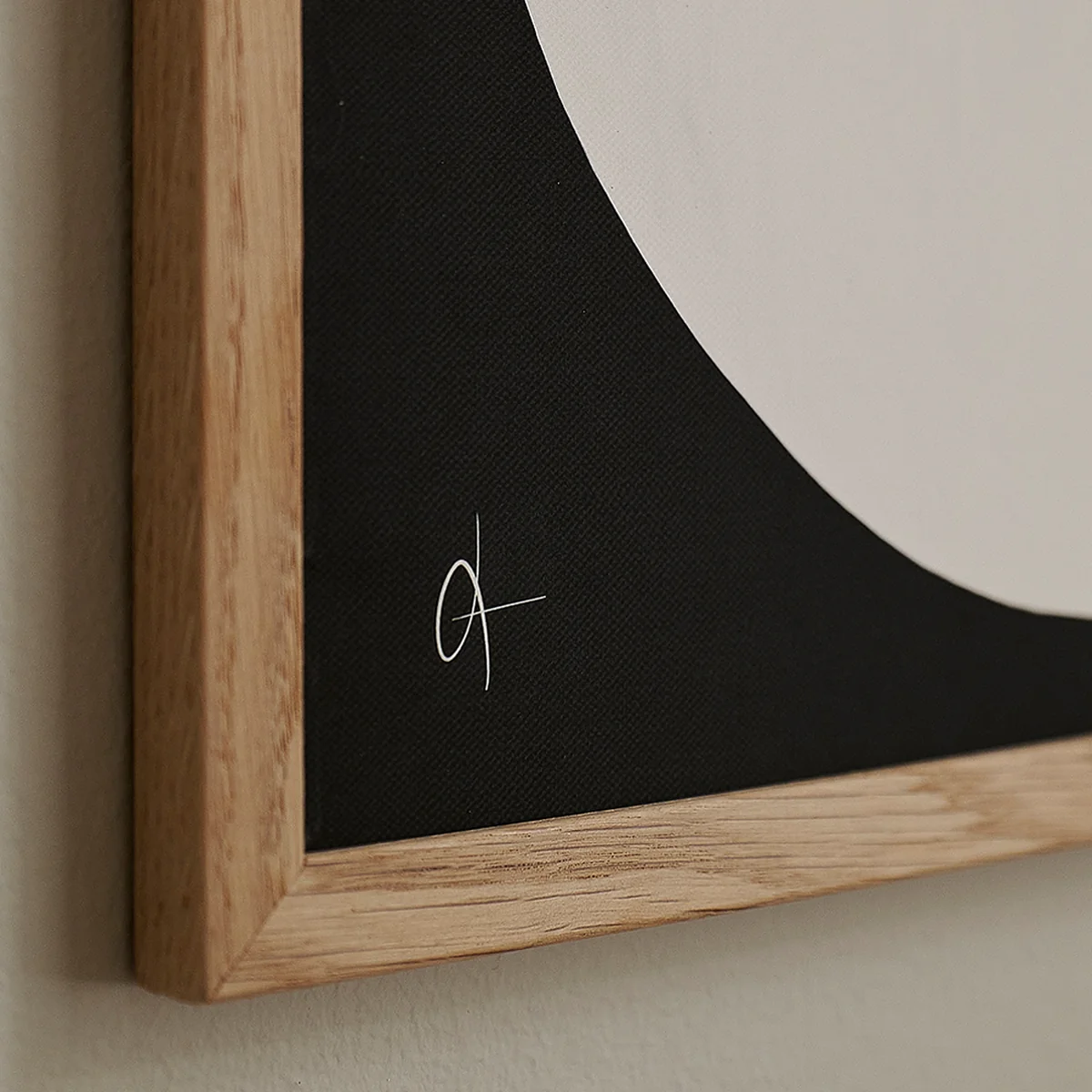 De kunstdruk kan ideaal worden gecombineerd met een standaard lijst, die echter niet wordt meegeleverd.