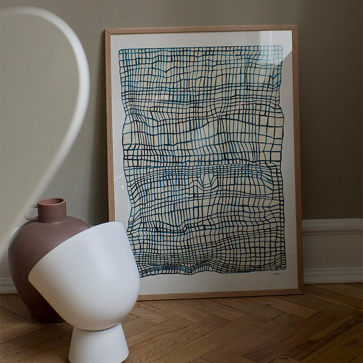 De Sketchbook kunstdruk van Ana Frois voor de Deense fabrikant The Poster Club inspireert met zijn geraffineerde, bewust uit de vrije hand gemaakte ruitmotief. Het motief is gedrukt op 265 g hoogwaardig kunstpapier. Sketchbook is zorgvuldig verpakt in vloeipapier en in een optimaal beschermende kartonnen koker.