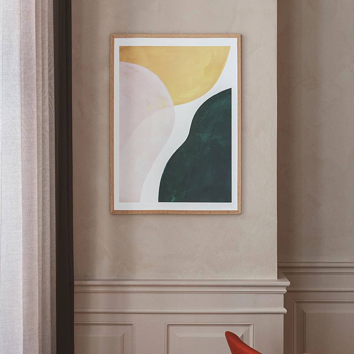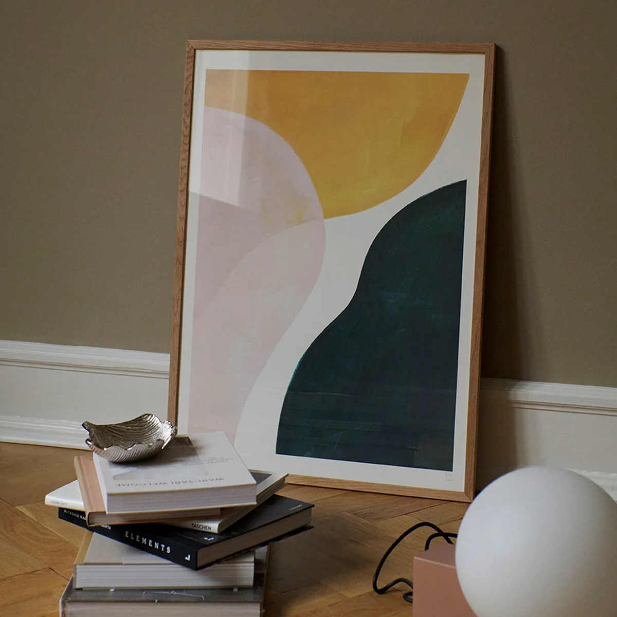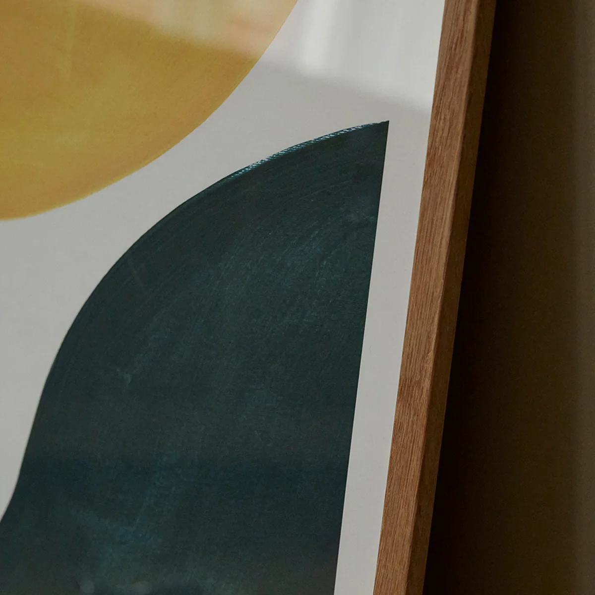 De kunstdruk kan ideaal worden gecombineerd met een standaard lijst, die echter niet wordt meegeleverd.