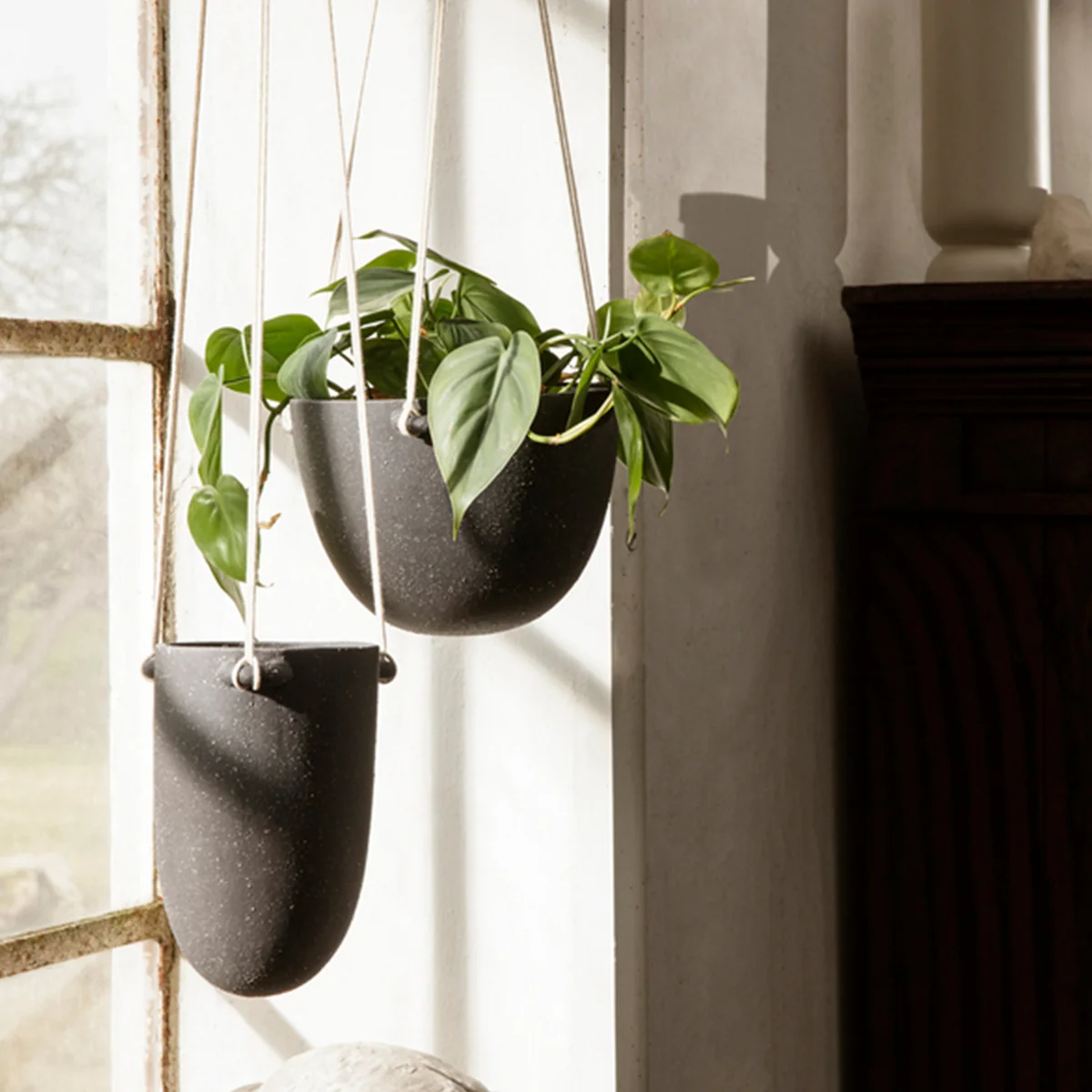 De Speckle hangbloempot van Ferm Living heeft een korrelige textuur en biedt een organische, handgemaakte look en flair. Het designobject heeft een vloeiend, halfrond silhouet en is opgehangen met een gedraaid katoenen koord. De royale lengte van het touw maakt het gemakkelijk om de hoogte aan te passen aan waar u het in uw huis wilt hebben.
