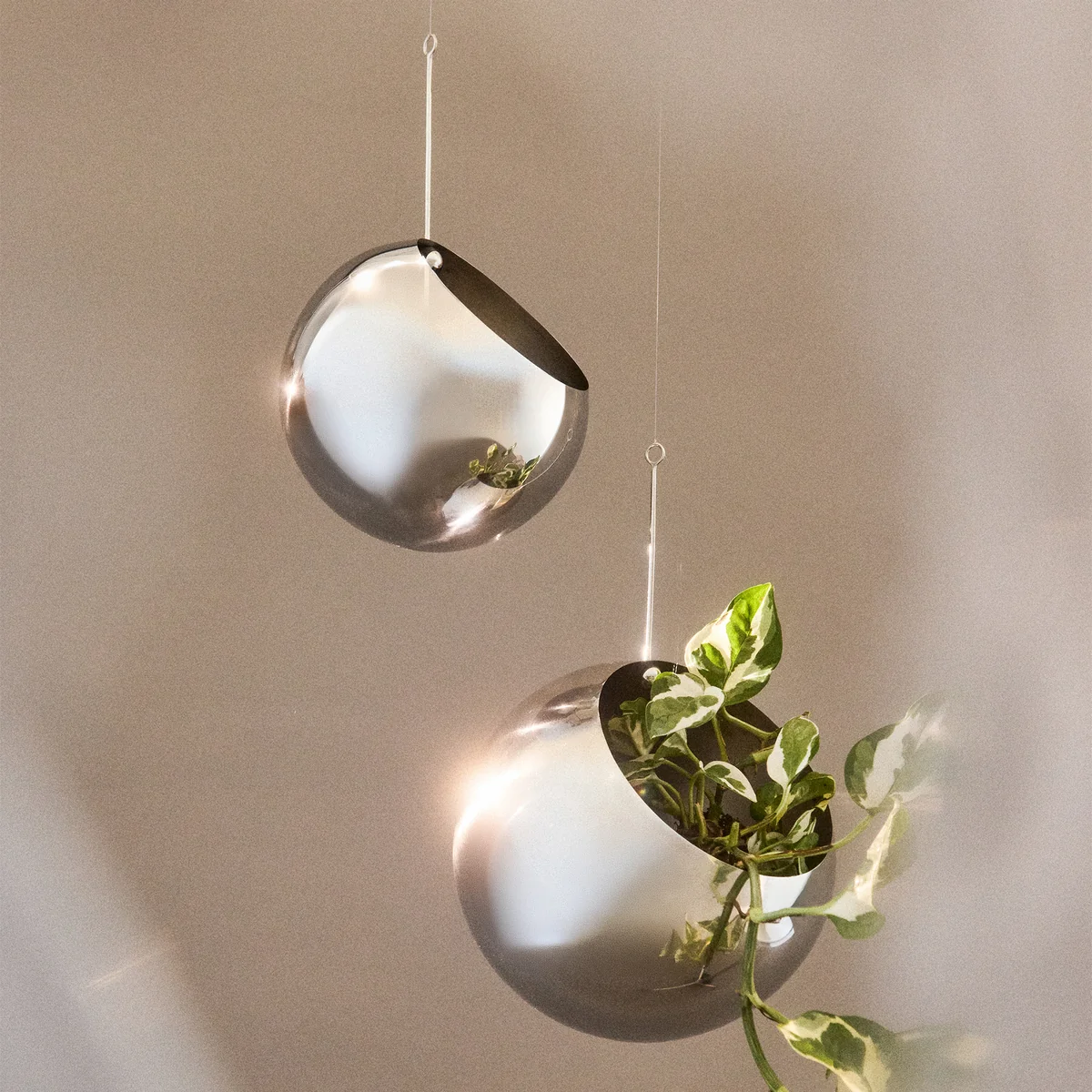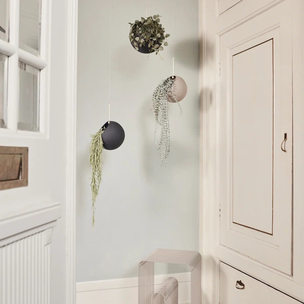 In een licht verspringend ontwerp komen de planten het best tot hun recht en hangen ze esthetisch in de lucht. De vorm doet denken aan een wereldbol en geeft de woonkamer een moderne subtiliteit, die tot uiting komt in de eenvoudige kleuren en het elegante ophangdetail. De Globe hangende bloempot is ideaal voor kamerplanten, vetplanten of luchtplanten. De hangende bloempot is verkrijgbaar in verschillende maten en kleuren en is een geraffineerd alternatief om meer groen in je interieur te verwerken.