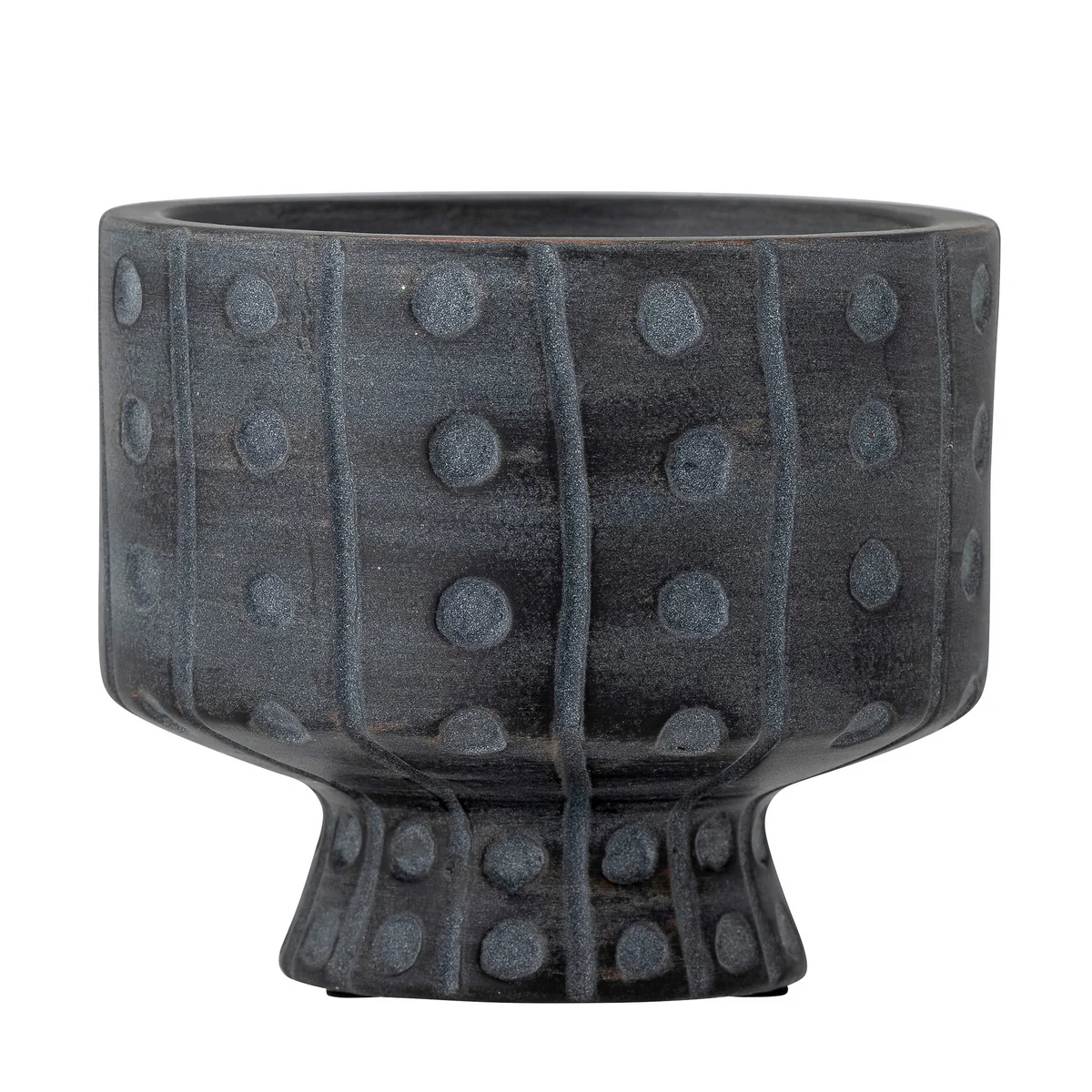 De bloempot Rane van Bloomingville is gemaakt van keramiek met een modern, mat oppervlak. De bloempot is versierd met een prachtig patroon van in reliëf aangebrachte stippen dat zich uitstrekt van de bodem tot de bovenkant. De donkergrijze kleur zal contrasteren met elke bloem of plant die erin wordt geplaatst.
