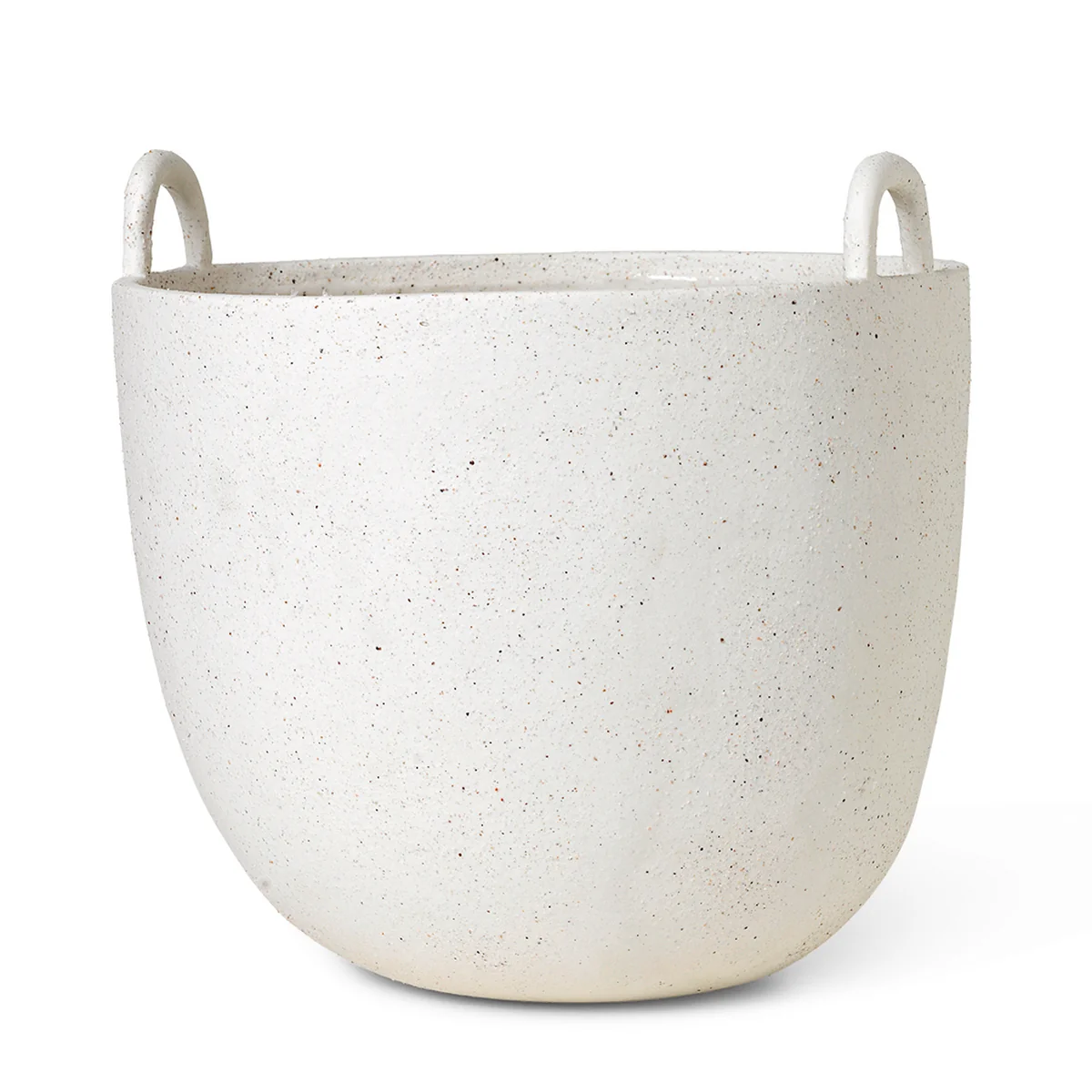 Speckle De bloempot van Ferm Living is een prachtig thuis voor kleine planten en bloemen. De pot met twee handgrepen weerspiegelt de onregelmatigheden van de natuur met een bijzonder korrelig steengoed met een ruwe textuur. De pot is elegant en decoratief dankzij de mooie afwerking.