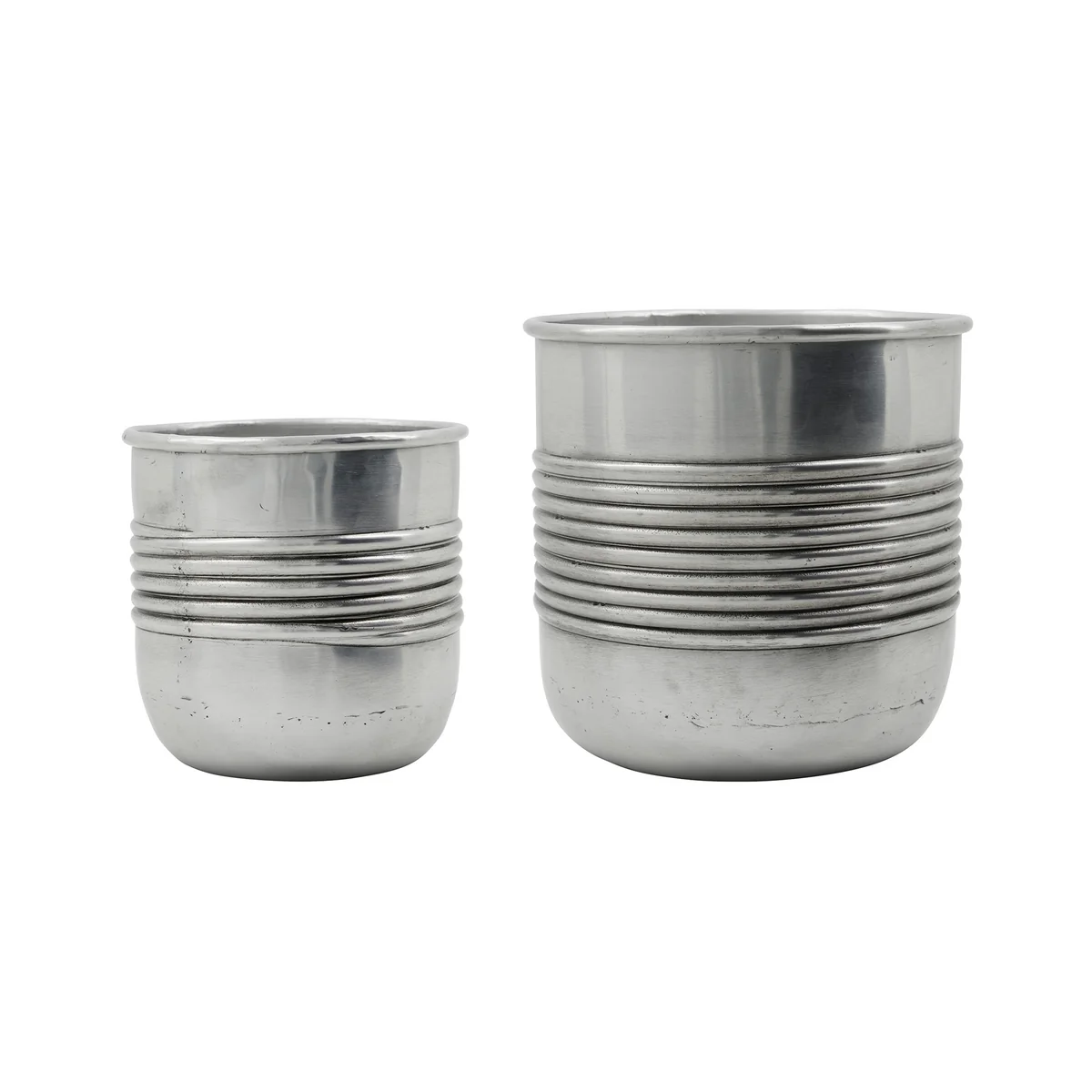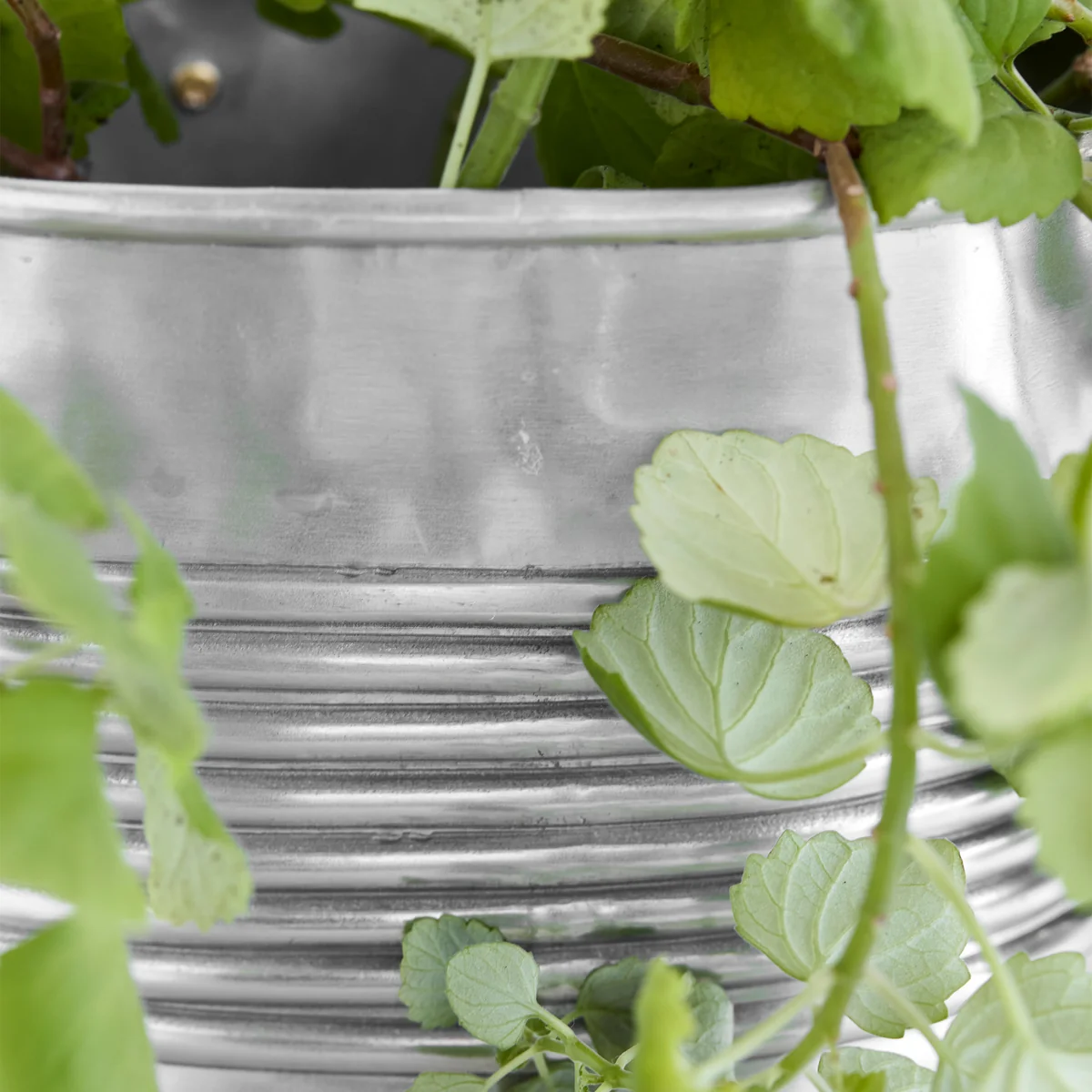 Deze handgemaakte Groove bloempot van House Doctor brengt elegante bohemien charme in je keuken, woonkamer of vensterbank. Het opvallende groefdessin in antiek zilver creëert een individuele blikvanger, terwijl het robuuste aluminium garant staat voor duurzame kwaliteit. Of het nu voor kruiden, planten of decoratieve arrangementen is - elke pot is uniek en opent creatieve designmogelijkheden in je huis.