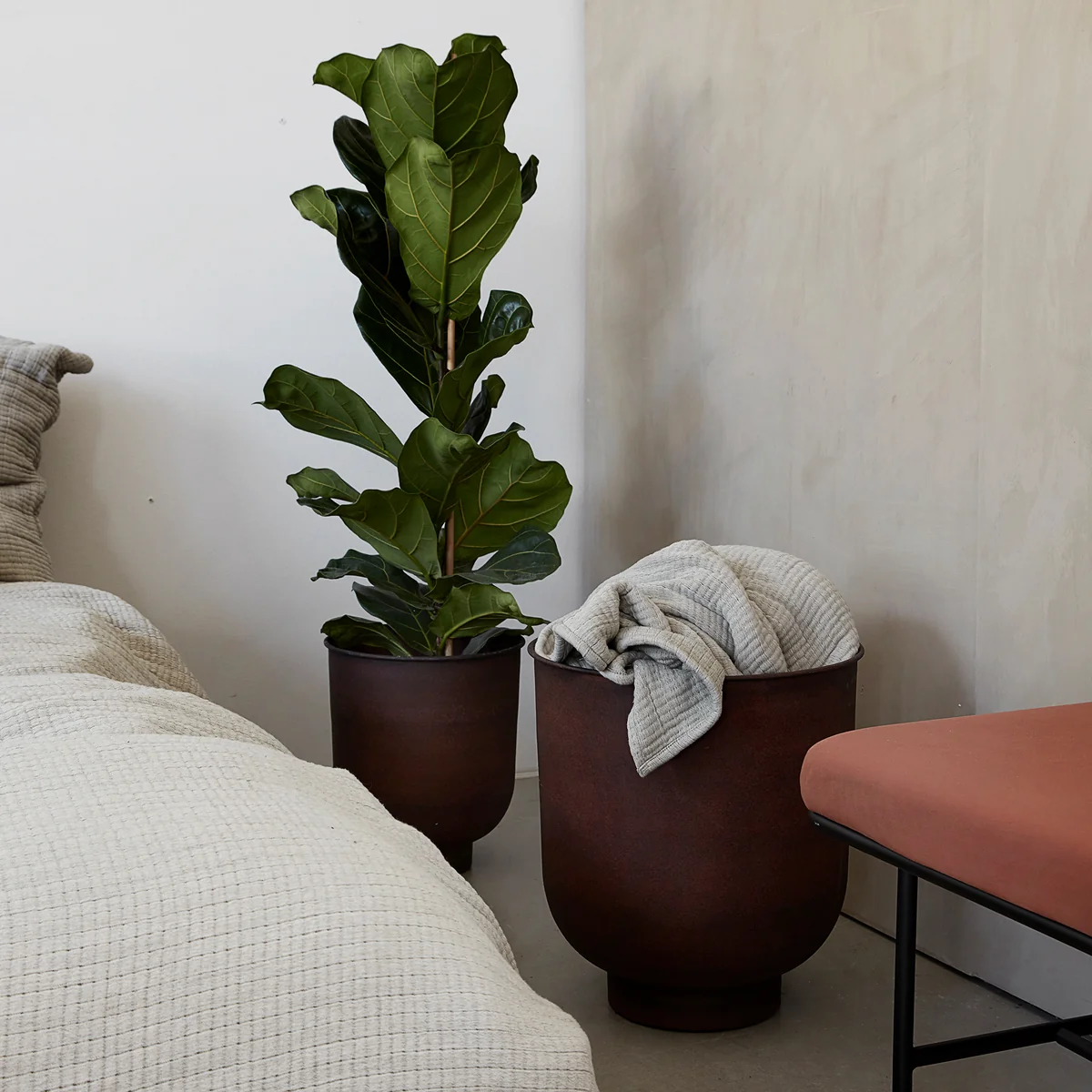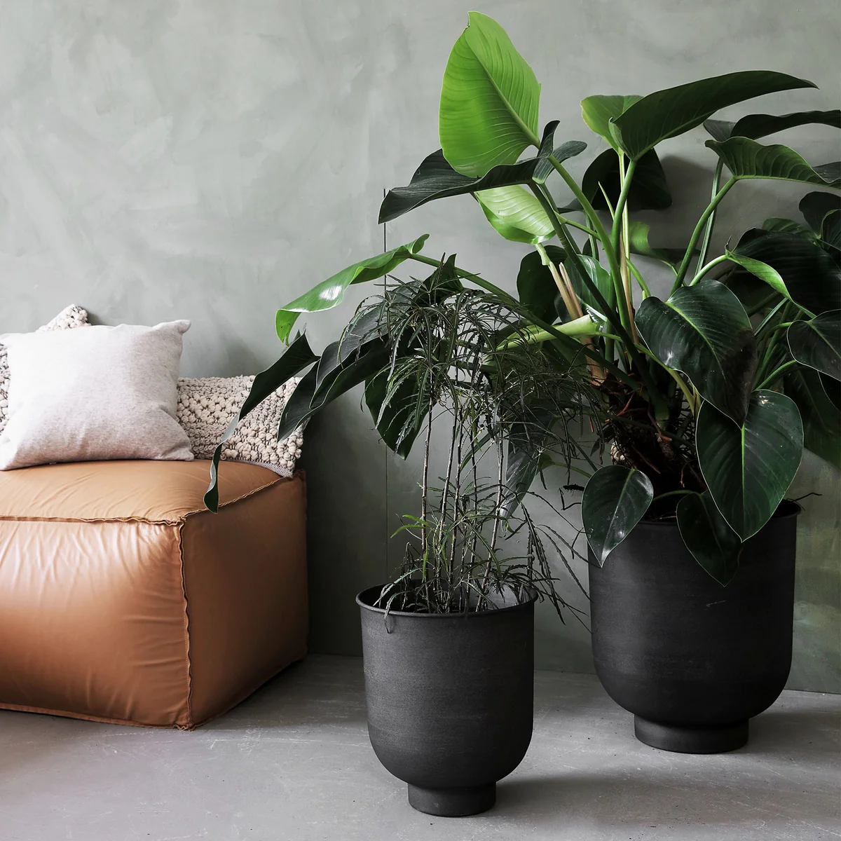 Vig House Doctor De plantenpotten van brengen levendigheid en persoonlijkheid in huis. De strakke vorm en het robuuste ijzer zetten groene planten, zoals palmbomen of drakenbloedbomen, perfect in scène en passen in bijna elke omgeving, of het nu in de woonkamer, hal of eetkamer is.