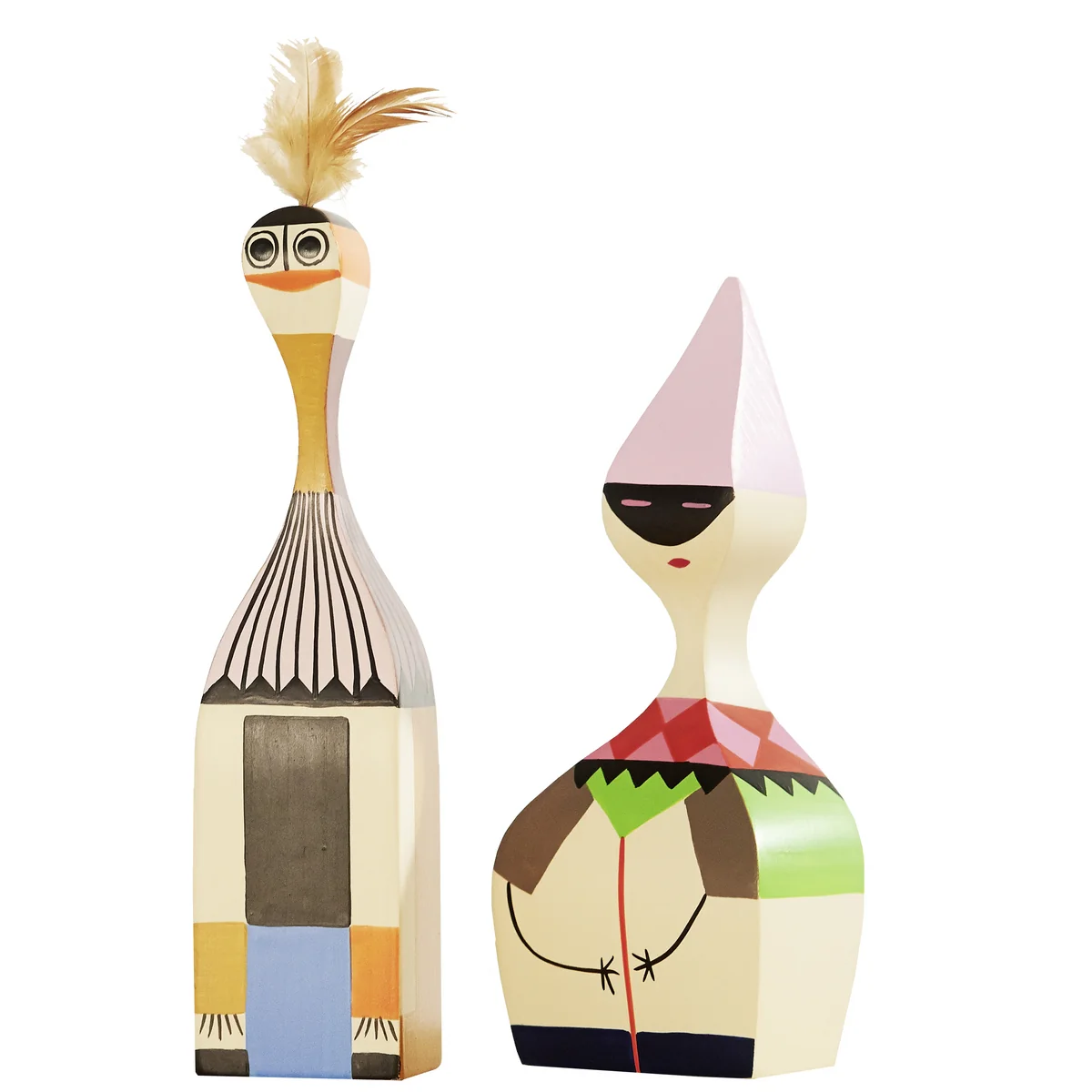 Half decoratief element, half speelgoed, de Wooden Dolls werden oorspronkelijk gemaakt voor eigen gebruik van ontwerper Alexander Girard. Het soms vrolijke, soms wat grimmig ogende gezelschap is gebaseerd op de originele figuren uit zijn nalatenschap en wordt geproduceerd door Vitra als charmante aanvulling op elk interieur.