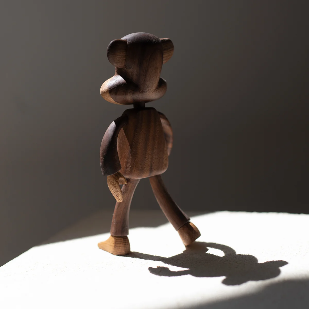 Houten figuur in aapmotief gemaakt van walnoot en eikenhout