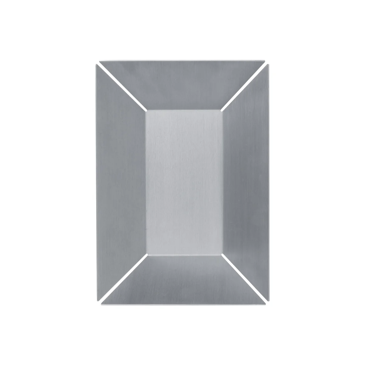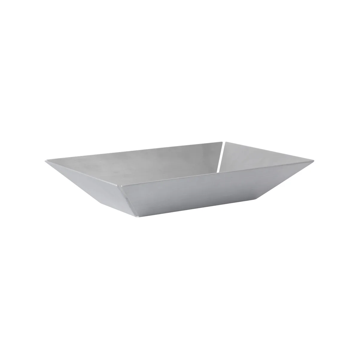 Het Press dienblad is gemaakt van vlakke, geborstelde aluminium platen en door middel van een nauwkeurig persproces in een dynamische, driedimensionale vorm gegoten. Opzettelijk geplaatste open randen en insnijdingen laten het metaal vouwen en geven het dienblad een opvallende, architecturale esthetiek. Dit veelzijdige accessoire is ideaal voor het organiseren van verschillende huishoudelijke artikelen, terwijl de strakke, geometrische lijnen eigentijdse elegantie toevoegen aan elke kamer.